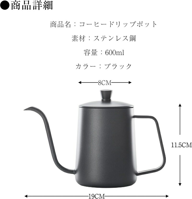 ドリップポット コーヒーポット コーヒードリップ用ポット ステンレス 細口 直火 コーヒー コーヒードリップ 器具 600ml やかん