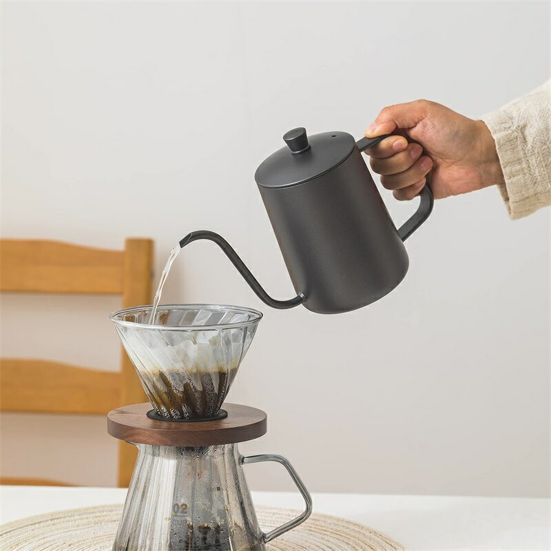 初心者でも使いやすいネックの太さが一定の細口タイプの注ぎ口です。細口タイプを採用、それに応じたグースネック形状のカーブとすることで、適量をこぼれることなく容易に注ぎ込めます。また注ぎ口先端部をなめらかに研磨することで湯切れ良い仕様に仕上げております。