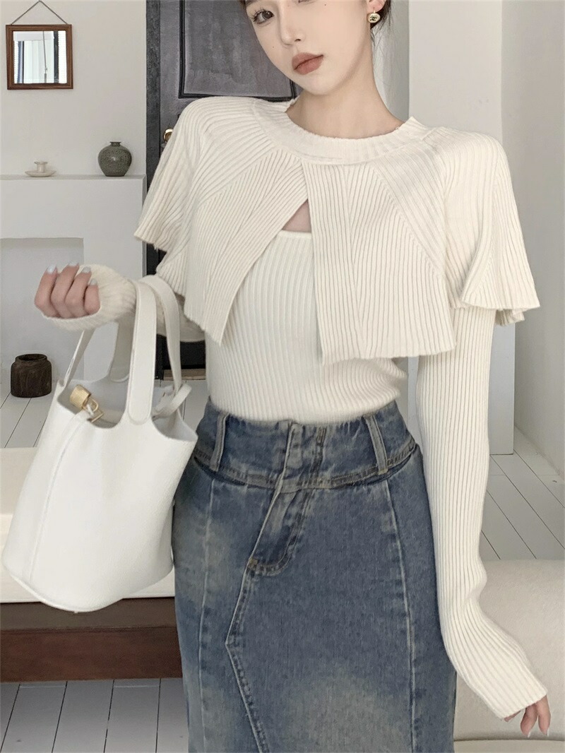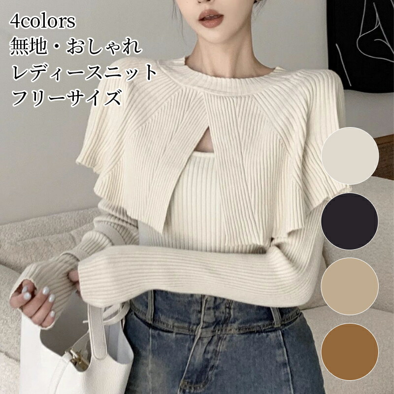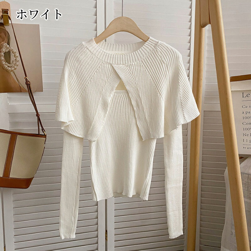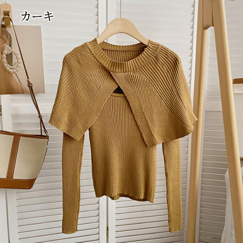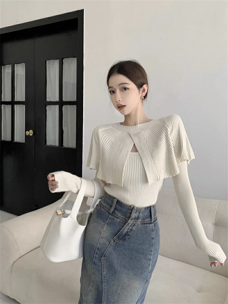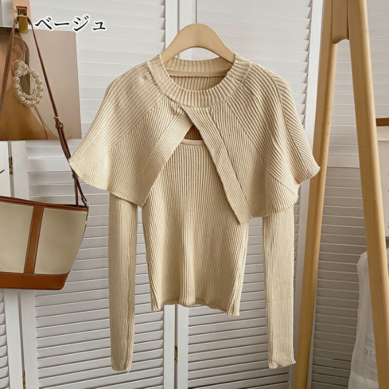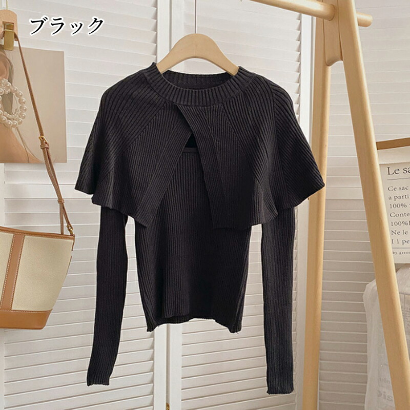ケープニット ドッキング ポンチョ ニット レディース リブニット ケープ トップス 長袖 ショート丈 セーター プルオーバー 体型カバー ニットセーター 細見え 着痩せ オフィスカジュアル セクシー