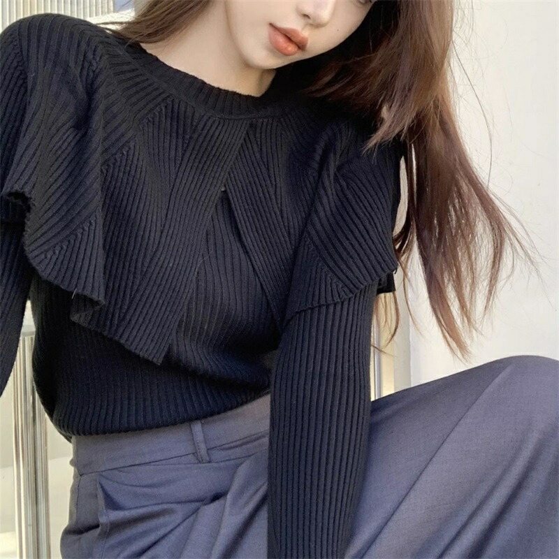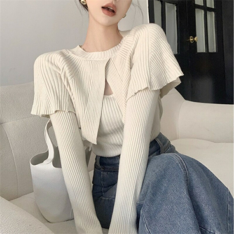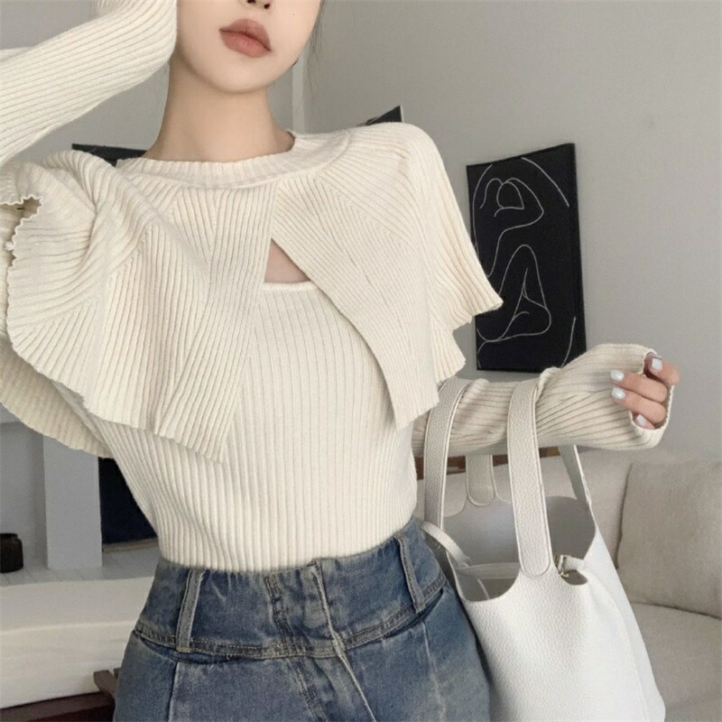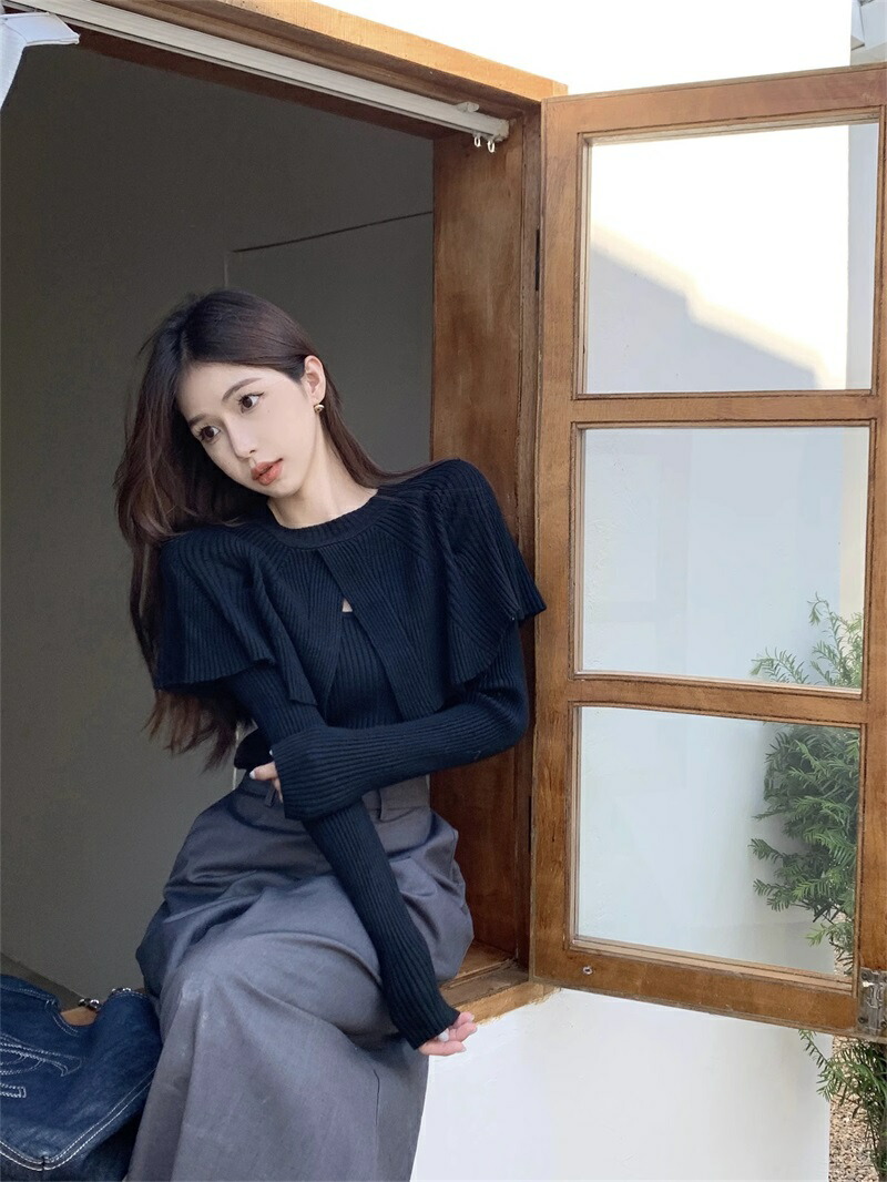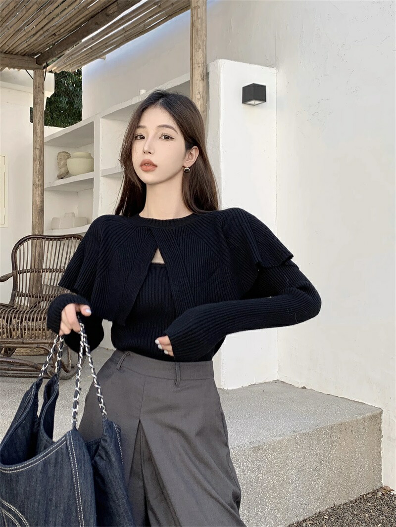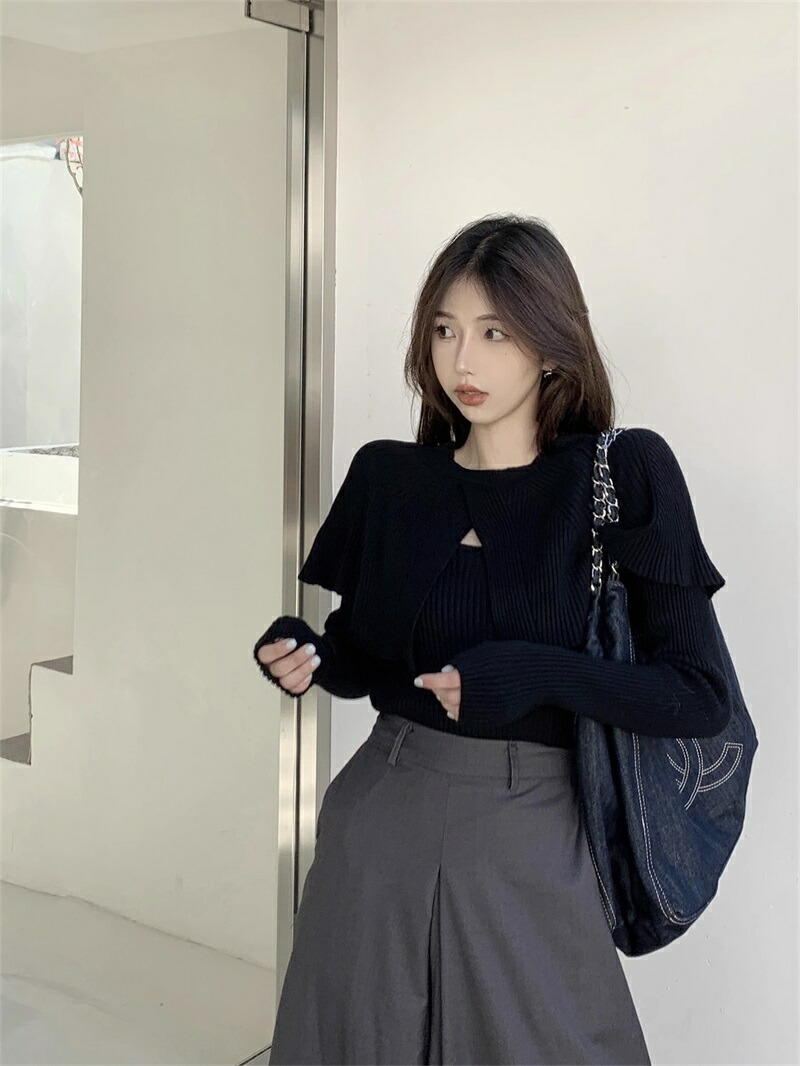 ケープニット ドッキング ポンチョ ニット レディース リブニット ケープ トップス 長袖 ショート丈 セーター プルオーバー 体型カバー ニットセーター 細見え 着痩せ オフィスカジュアル セクシー