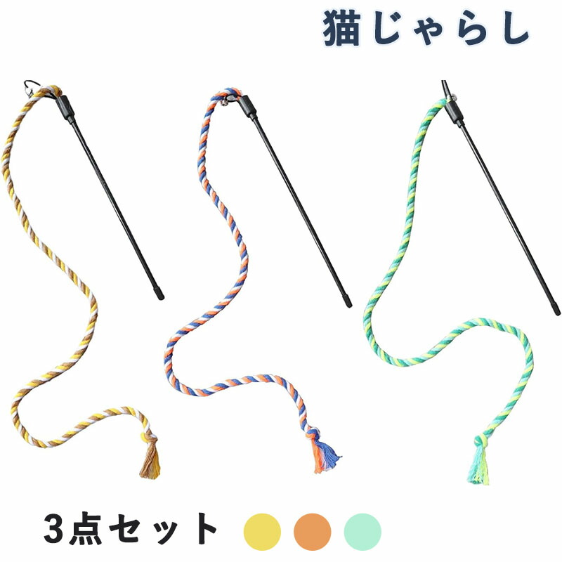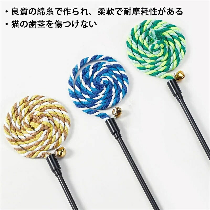 猫じゃらし 3点セット 紐 切れない 猫 おもちゃ 猫のおもちゃ歯磨き 猫ロープおもちゃ 人気 頑丈 運動不足 ストレス解消 綿紐竿