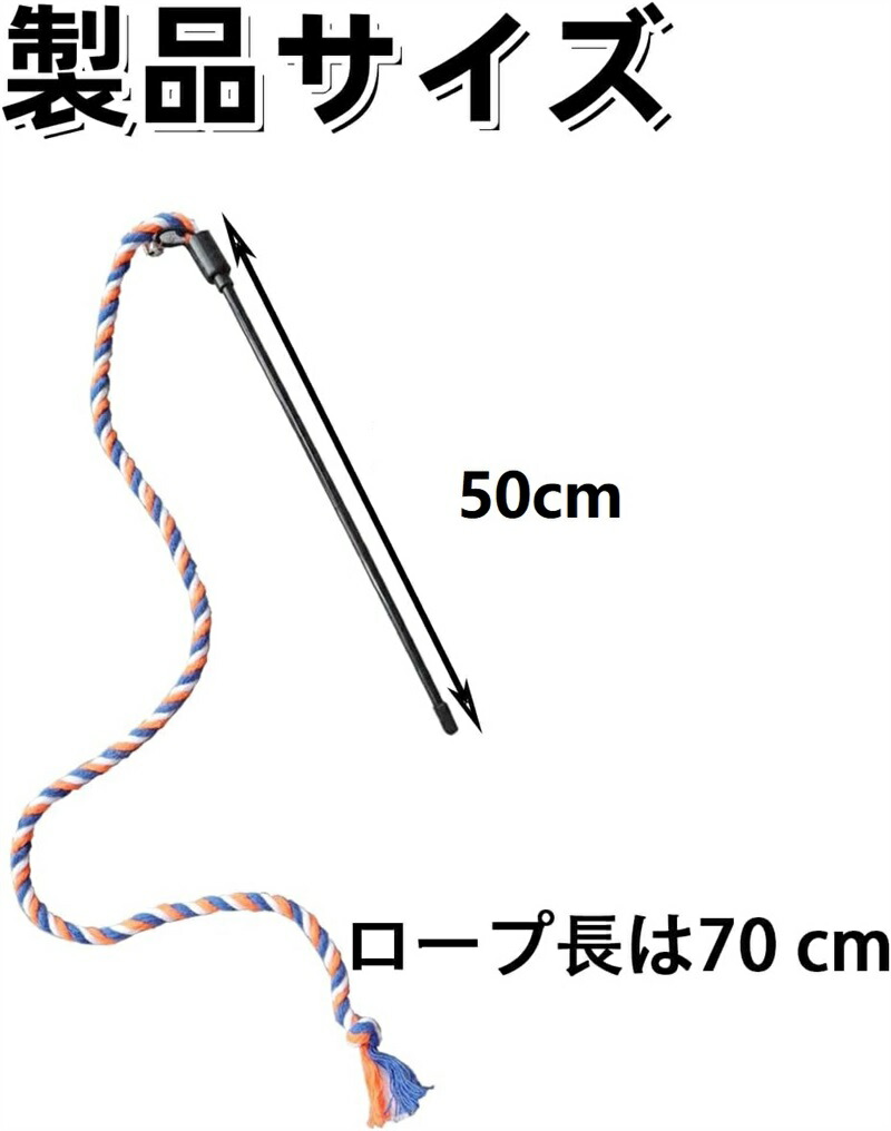 【仕様】:猫のおもちゃ3個入り。ロープの長さは70 cm、ポールの長さは50 cm。