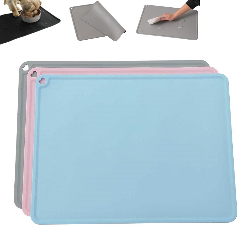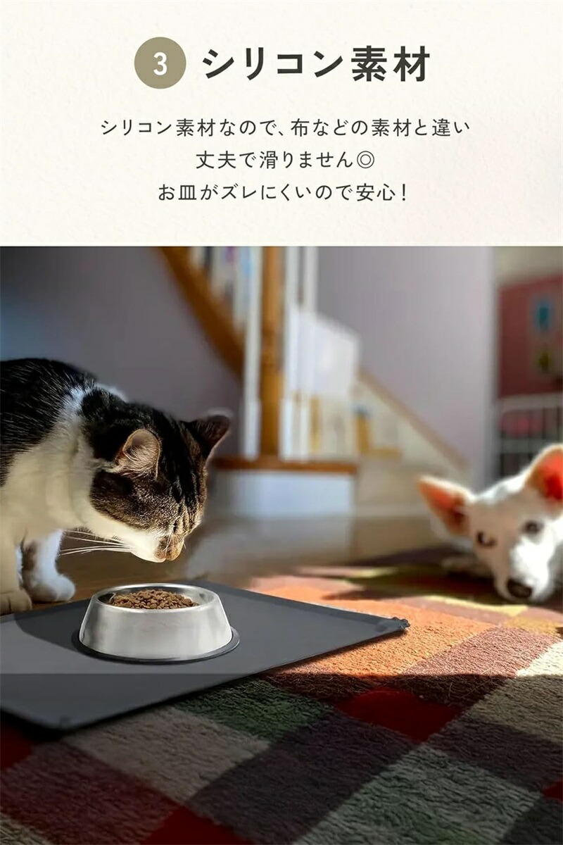 犬猫 シリコンマット お食事マット 洗える 丸洗い 汚れにくい 滑りにくい 食べこぼし 飛び散り防止 コンパクト シンプル ペット用ランチョンマット 長方形