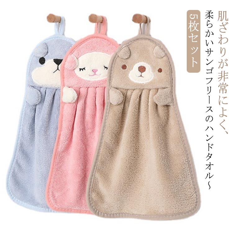 犬 かわいい お手拭きタオル 5枚セット 男の子 ふわふわ おしゃれ 柔らかい 動物 小学校 アヒル 羊 クマ ペンギン 保育園 幼稚園 子供 ループ付きタオル いぬ 紐付き 手拭 女の子