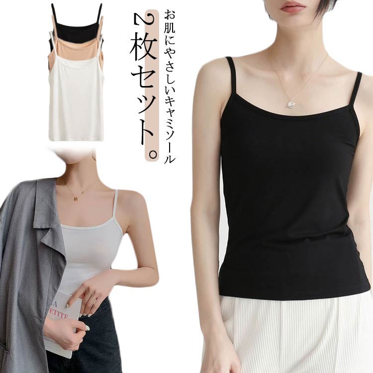 インナー レディース 2枚セット キャミソール 下着 ノースリーブ カットソー トップス 上品 ラウンドネック 大きいサイズ 無地 シンプル 仕事 オフィス 大人 通勤 就活 就職活動 薄手 事務服