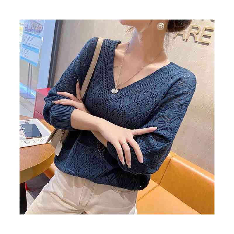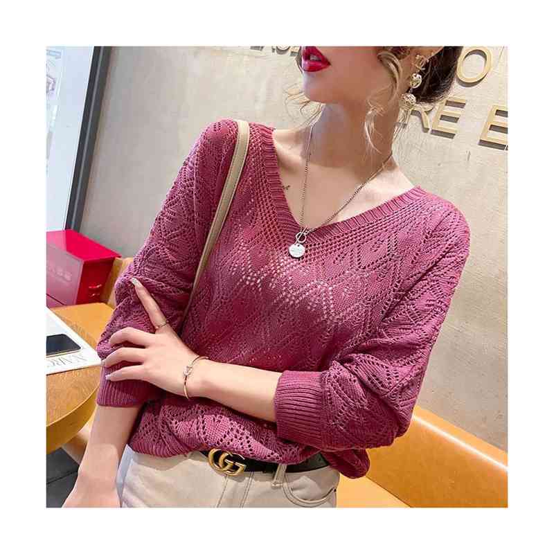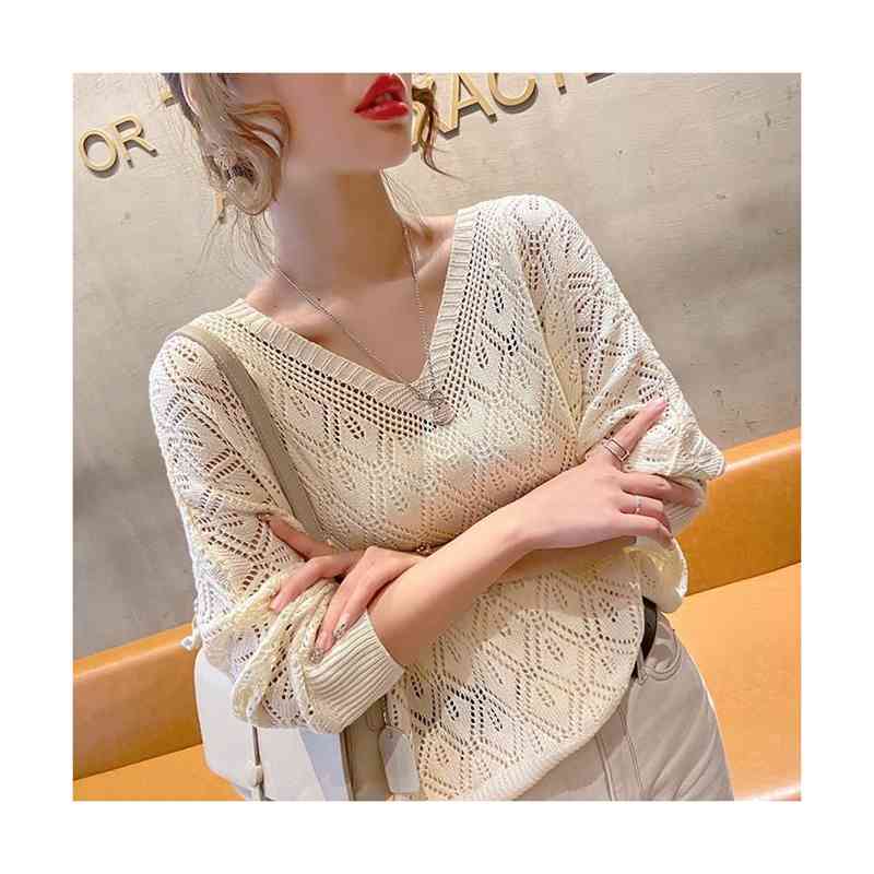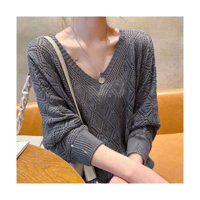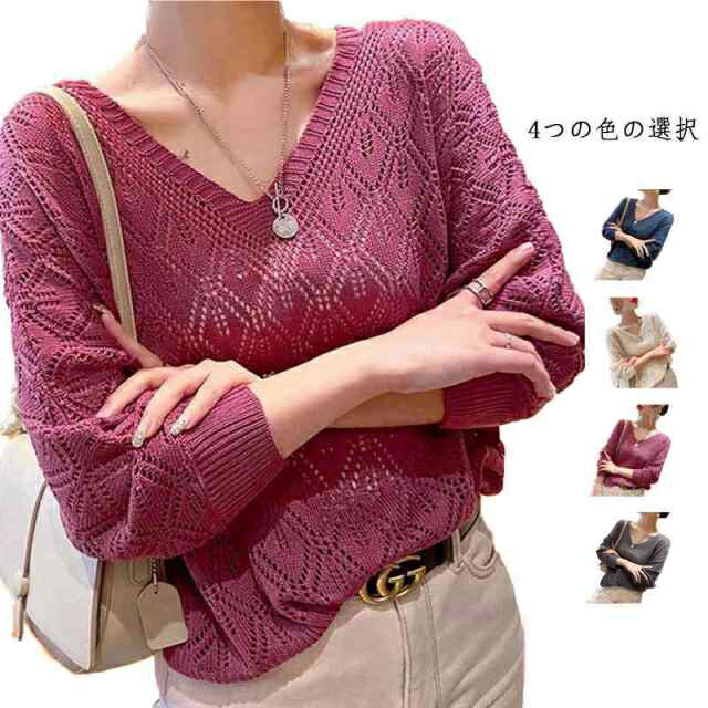 vネック レディース ブラウス サマープルオーバー 透かし編み ニットトップス 春夏 サマーニット 透け シアーニット シ ニットプルオーバー
