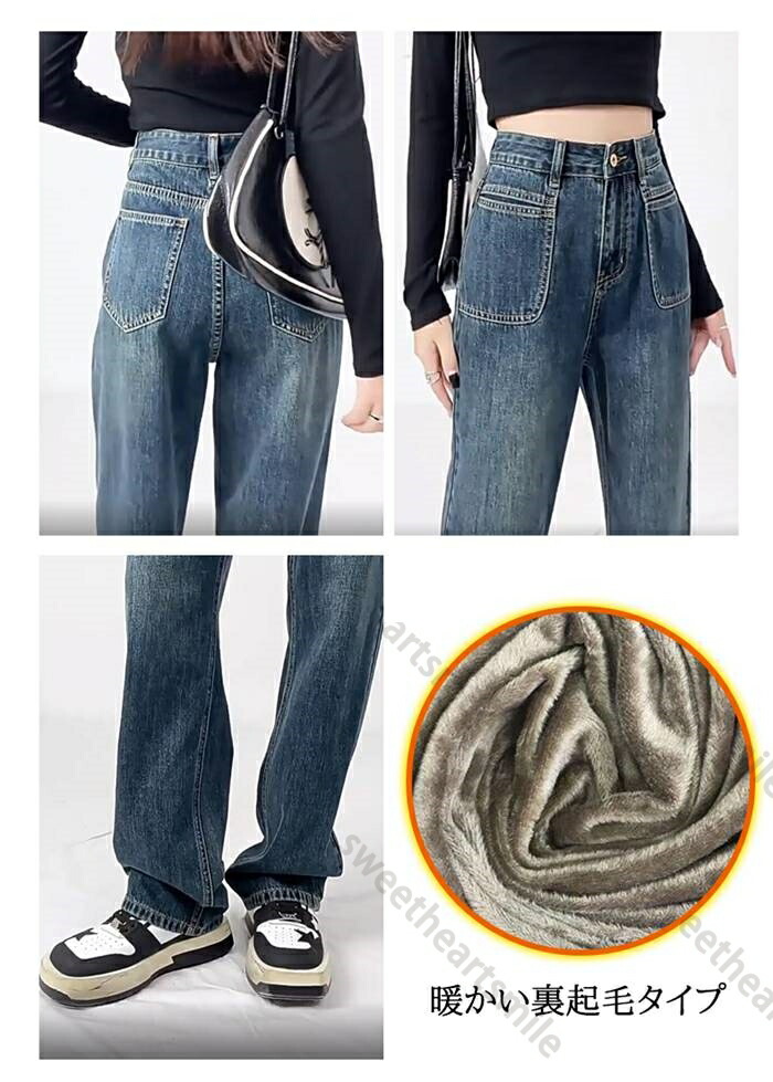 裏ボア ワイドパンツ デニムパンツ レ レディースファッション 超目玉商品 ブルー New-ダークブルー New-ライトブルー M L XL
