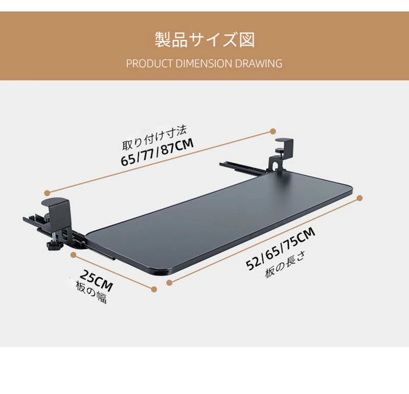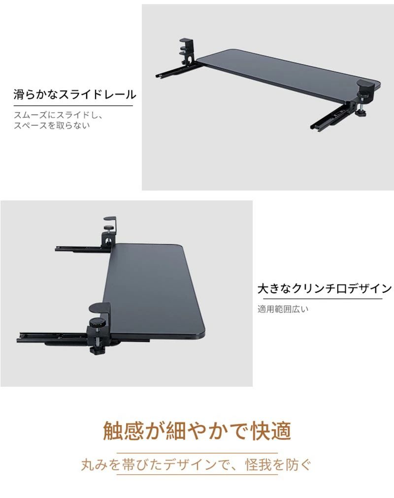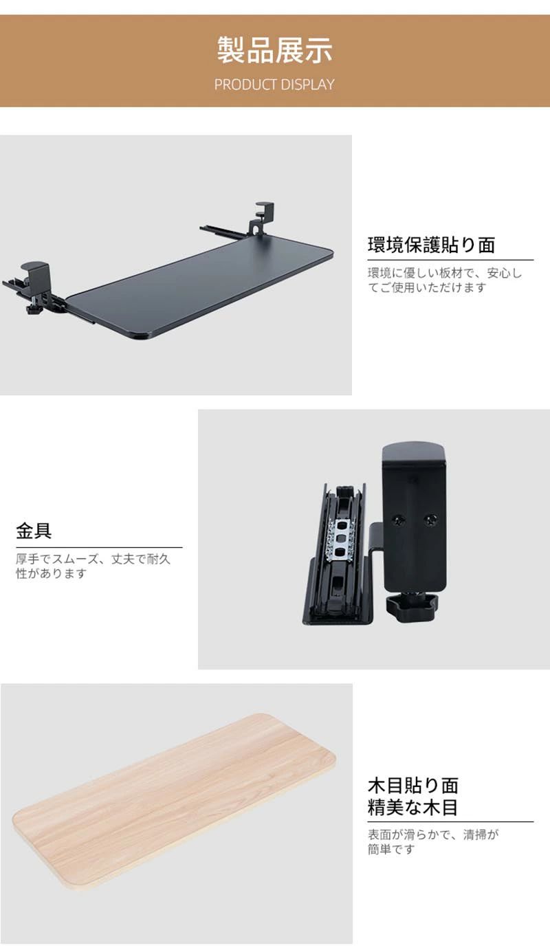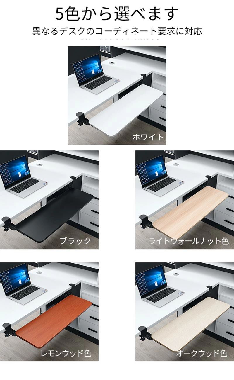 キーボードスライダー pcデスク 後付け 穴開け不要 クランプ式 木製 キーボードトレイ キーボード台 デスク延長板 マウス キーボード ラック テレワーク 在宅ワーク 完成品 おしゃれ 北欧 木目柄