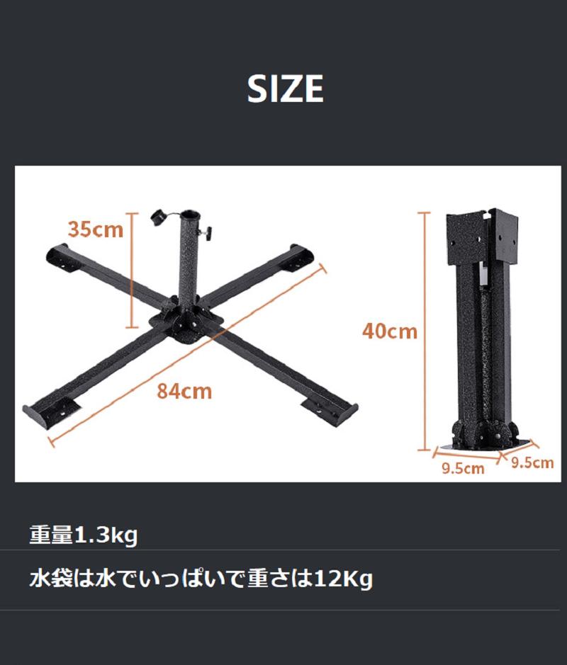 パラソルベースバッグ 傘ベース テント固定用 土台+ウェイトバッグ 強風対策 注水式 防風 防止事故 角度調節 持ち運び アウトドア キャンプ用 折り畳み式
