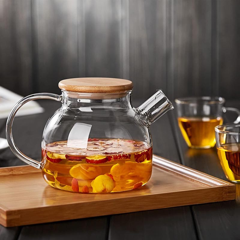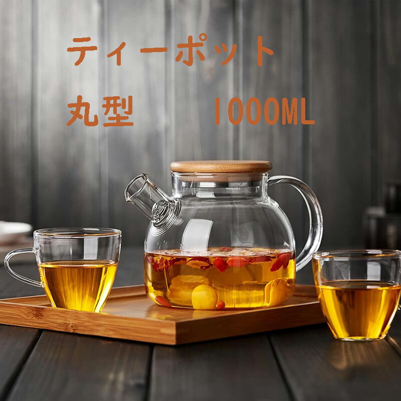 ガラス急須 ティーポット ガラスやかん 耐熱ガラス 割れにくい 透明 ガラス製ポット 丸型 紅茶 緑茶 フルーツティー リーフティー 花咲く工芸茶 ケトル 直火対応 大容量 1000ml 茶こし付き