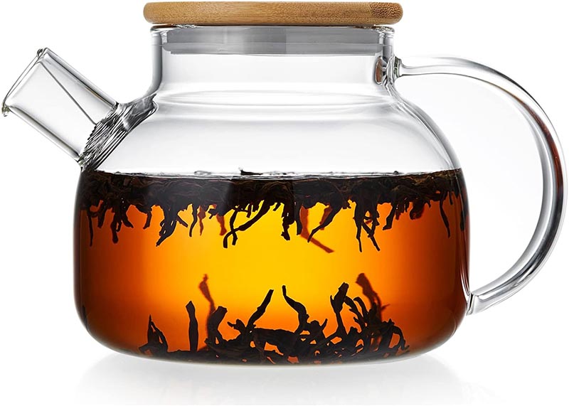 大容量透明急須ティーポット、直火対応、丸型、新しいデザインスプリングのよなステンレス茶こし付き、片付け便利