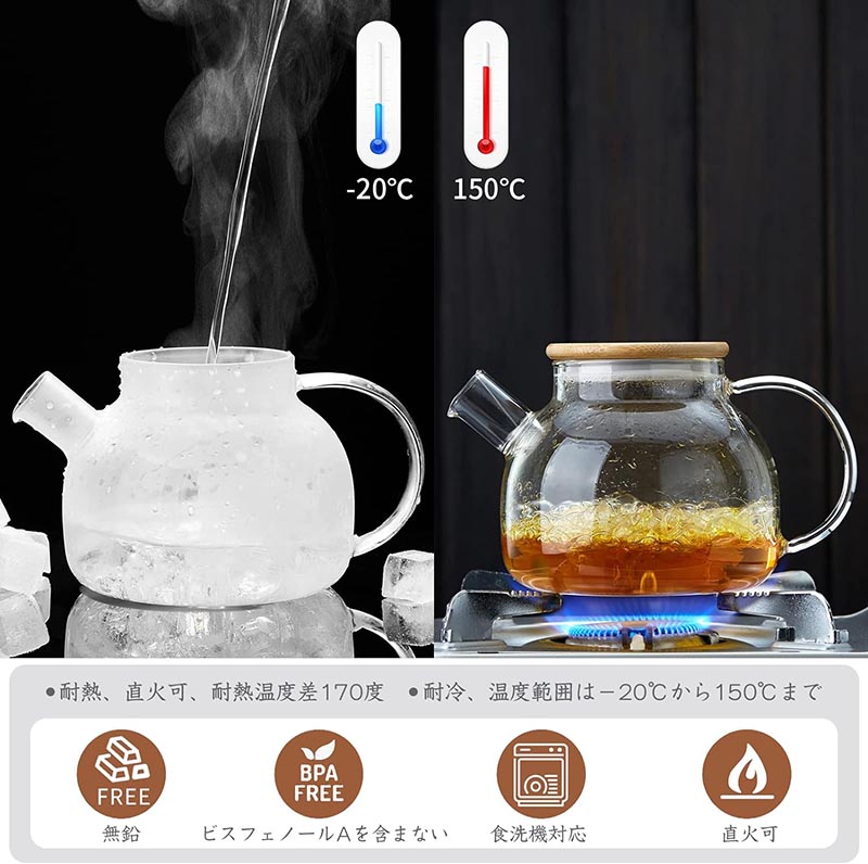 無鉛ガラスです、鉛や重金属など有害物質を含まないので、環境にや健康無害のガラス急須です。耐熱ガラス製ですので、麦茶などを煮出した熱いまま入れても変形したり何かが溶け出したりする心配なく使えます, プラスチックと違ってガラスはお茶の持ち味を保つことができます。