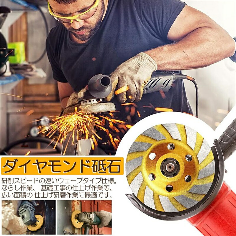 ディスクグラインダーにセットして使用するダイヤモンドカップホイールです。対象物を面で研磨しなめらかに仕上げます。ご家庭でのDIYから、業務用まで幅広い用途で使用できます。