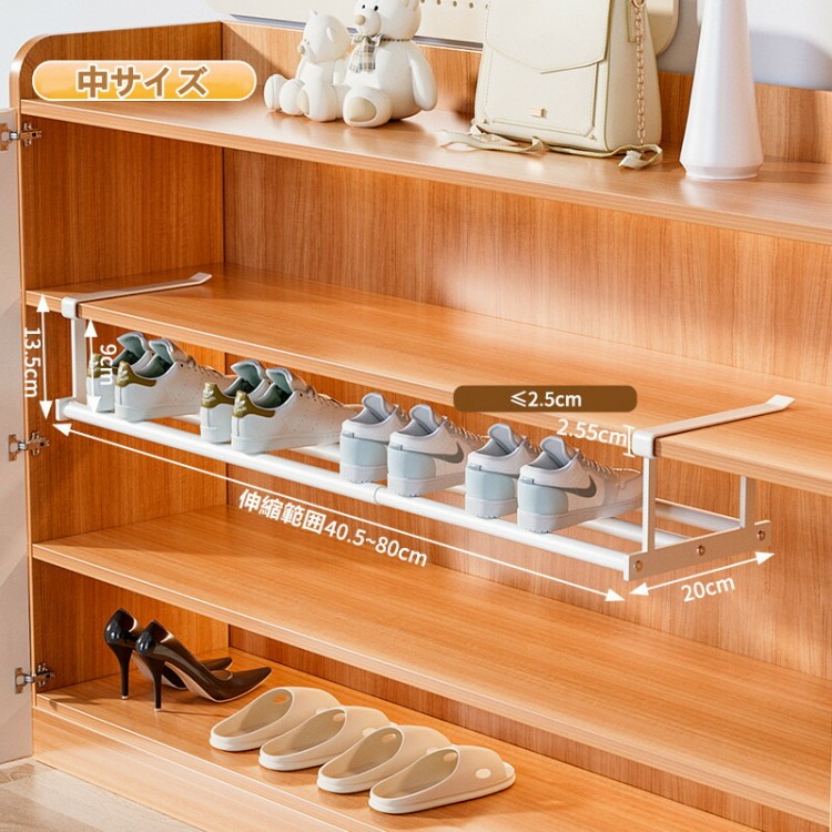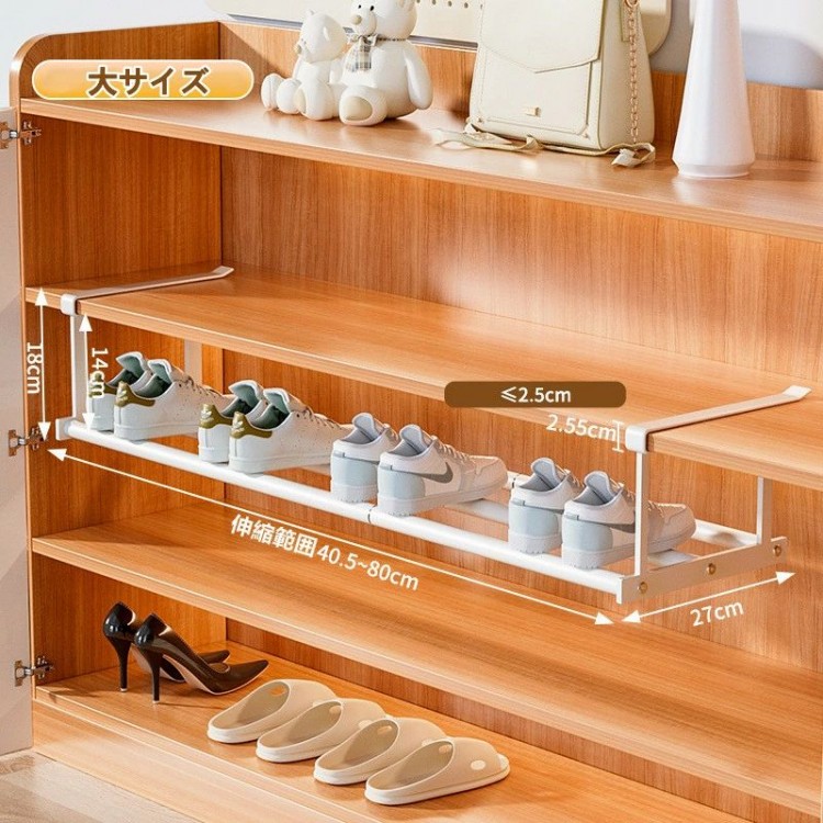 浮かせるシューズラック 浮かせる伸縮シューズラック 伸縮式靴掛け 玄関 靴収納 シューズラック 靴箱 靴棚 シューズクローク 省スペース 狭い 伸縮 下駄箱 ラック 靴箱下 下駄箱下 靴