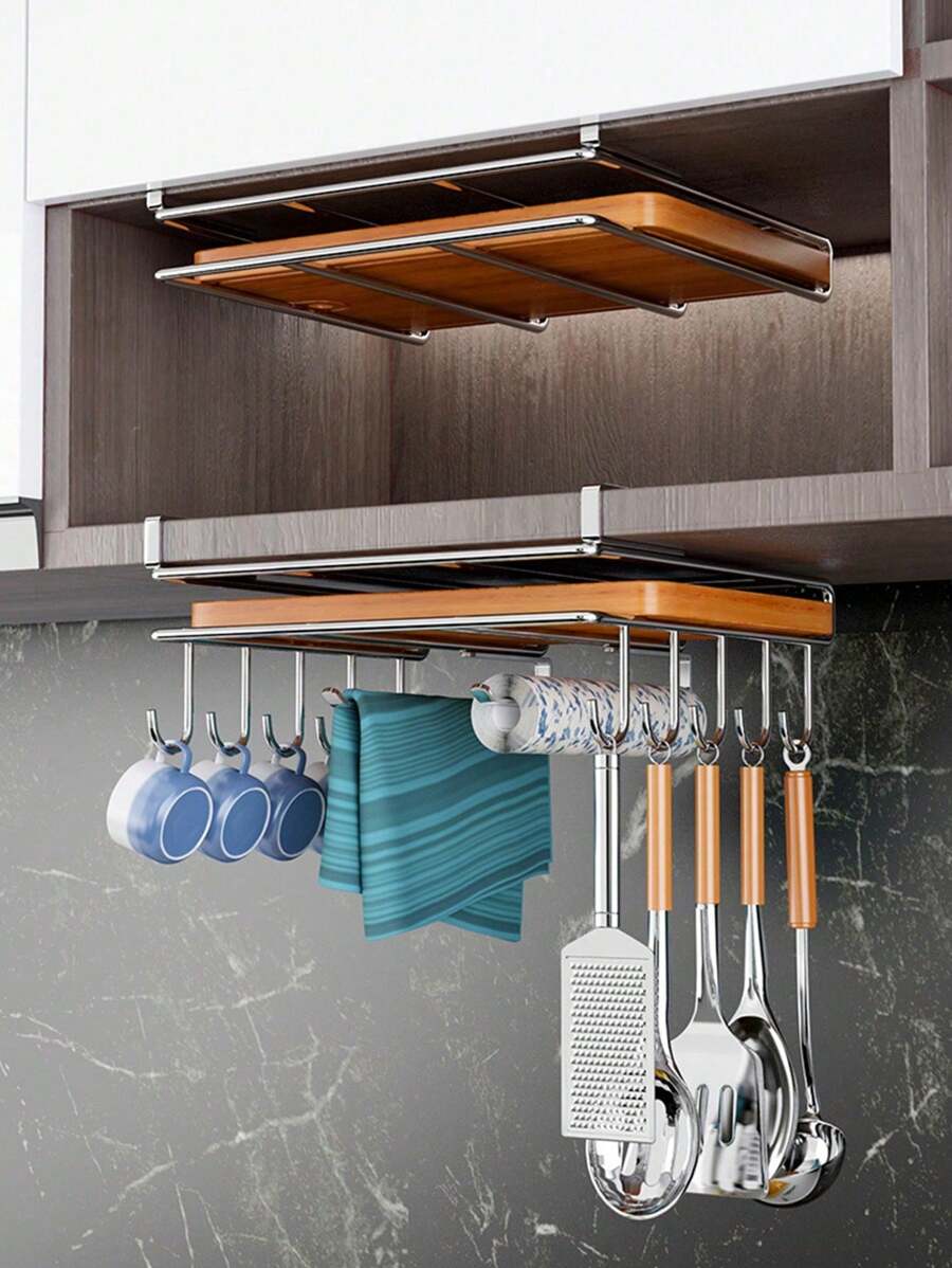 キッチン収納 カッティングボード フタ 収納ラック 1個 デスク用台所収納 まな板スタンド 戸棚下まな板ホルダー 吊り下げラック まな板収納 まな板置き 組み立て不要 穴あけ不 鍋蓋収納