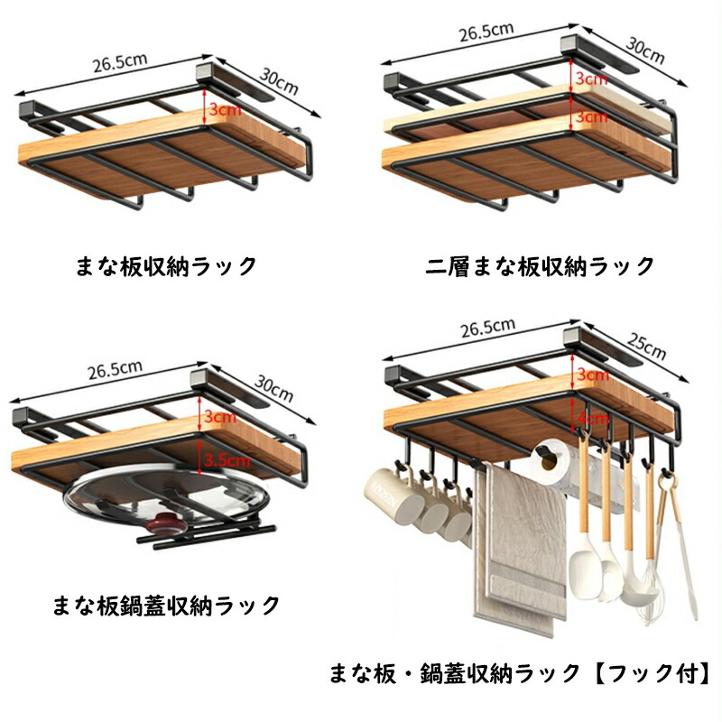 キッチン収納 カッティングボード フタ キッチン整理用品 その他 豊富な品揃え ブラック ホワイト まな板収納ラック まな板鍋蓋収納ラック まな板・鍋蓋収納ラック【フック付 二層まな板収納ラック