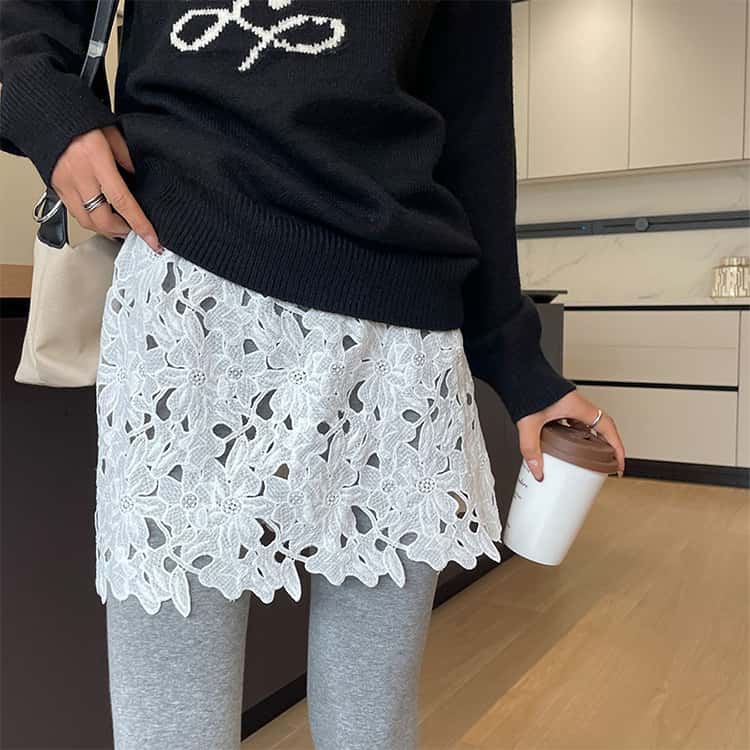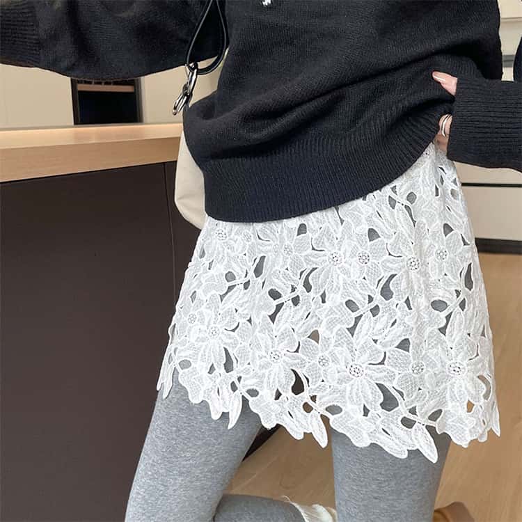 付け裾 レース レディース レイヤード 重ね着風 花柄 つけ裾 お尻が隠れる オシャレ 可愛い 体型カバー ウエストゴム