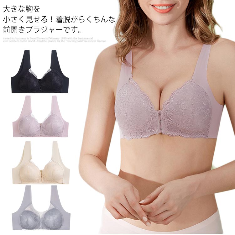 前開きブラ 大きいサイズ 胸が小さく見えるブラ 胸を小さく見せるブラジャー 大きな胸を小さく見せるブラ ノンワイヤーブラ 脇高 脇肉すっきり 補正下着 レース 下着 背中 スッキリ 垂れ防止 インナー
