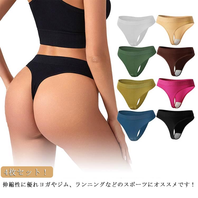 4枚セット ショーツ Tバック 下着 パンツ シンプル レディース タンガ ひびかない パンティー 締め付けない 普段使い パンティライン ヨガ 水着インナー スポーツ ランジェリー 上品 シー ジム