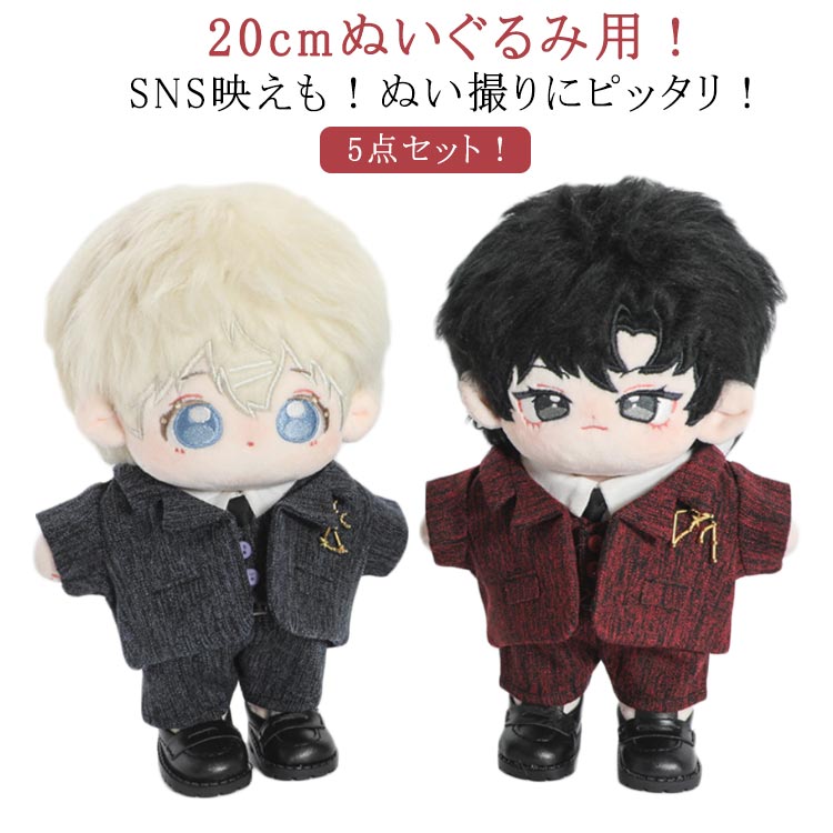 20cm ぬいぐるみ 服 ぬい服 スーツ セット 5点セット 上着 白シャツ 半ズボン ネクタイ コスチューム 着せ替え 洋服 ぬい 推しマスコット ヲタ活 オ 推し活グッズ