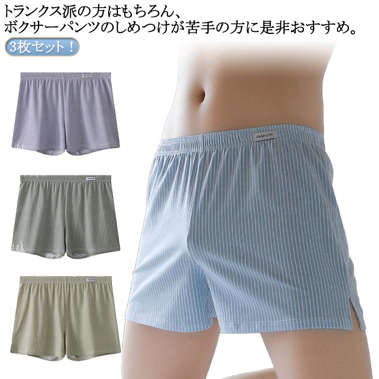 3枚セット!トランクス派の方はもちろん、ボクサーパンツのしめつけが苦手の方に是非おすすめ。