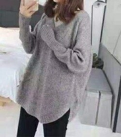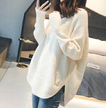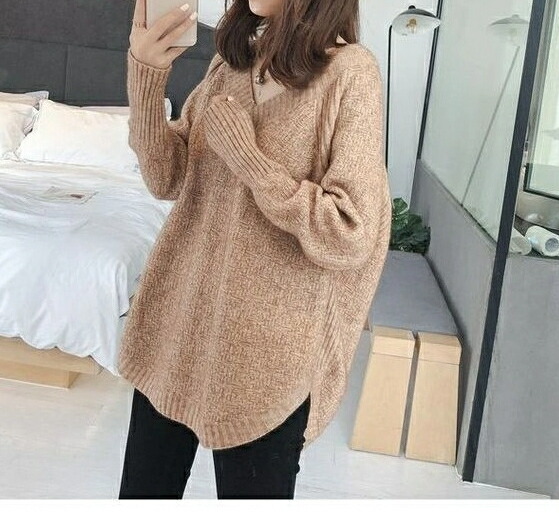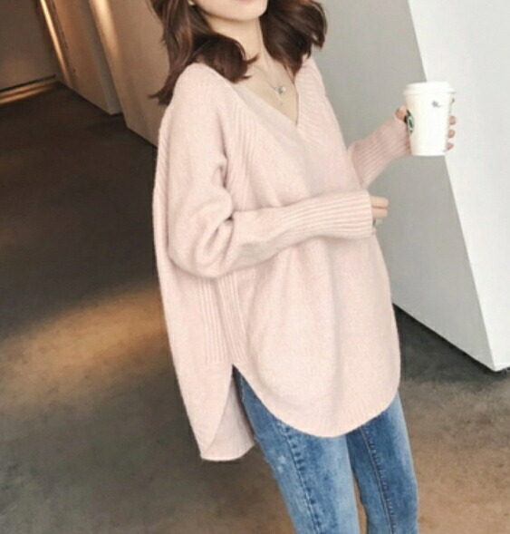 ゆるっと Vネック オーバーサイズセーター 女 冬 厚め ふんわり カジュアルレディース 学生服 シャツ 着痩せ
