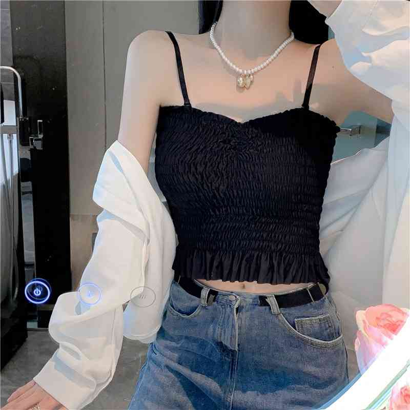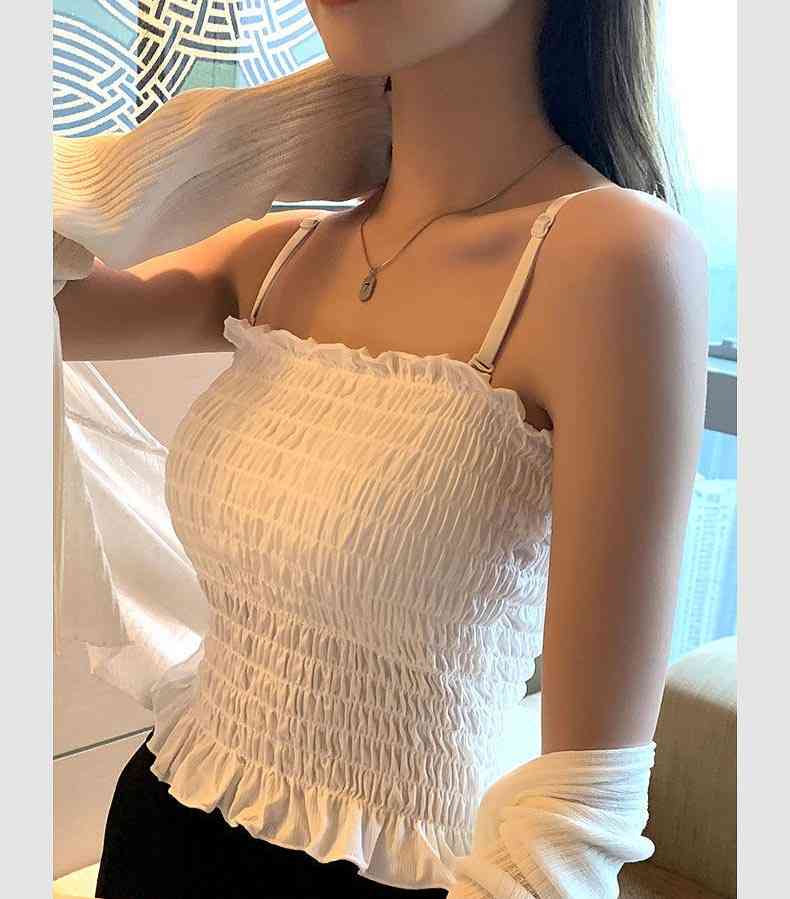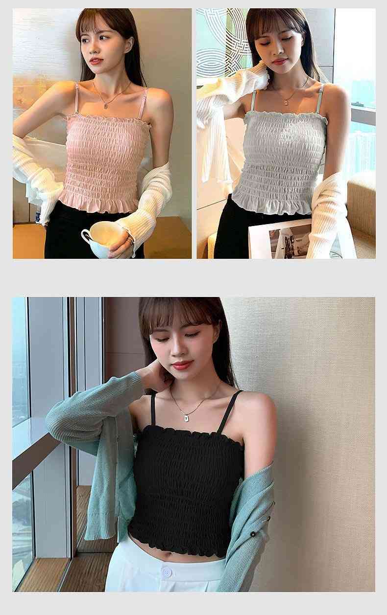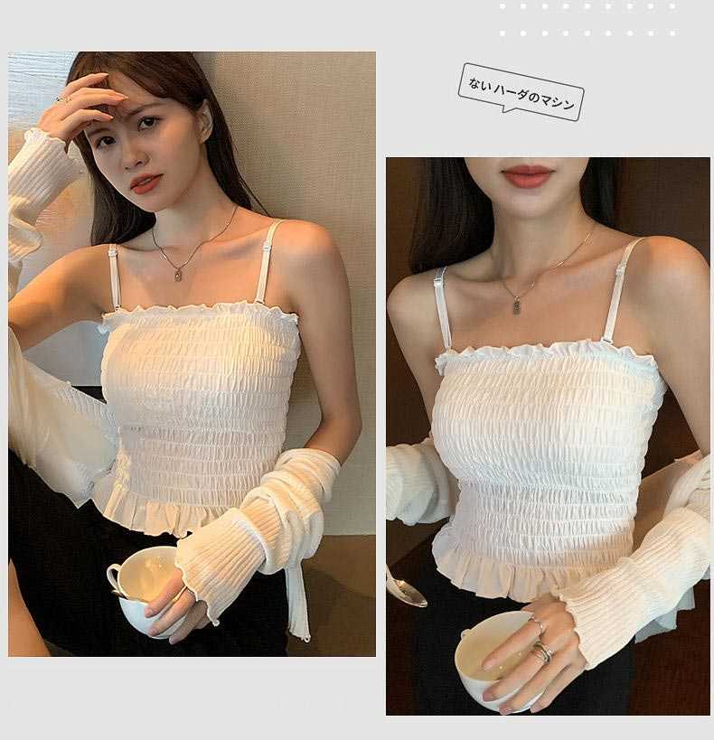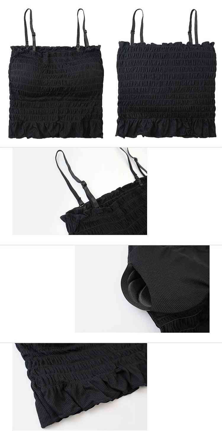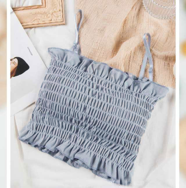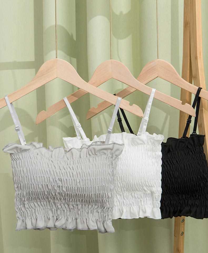 チューブトップ パット付 シャーリング フリル 伸縮 涼感ベアトップ ベアトップ