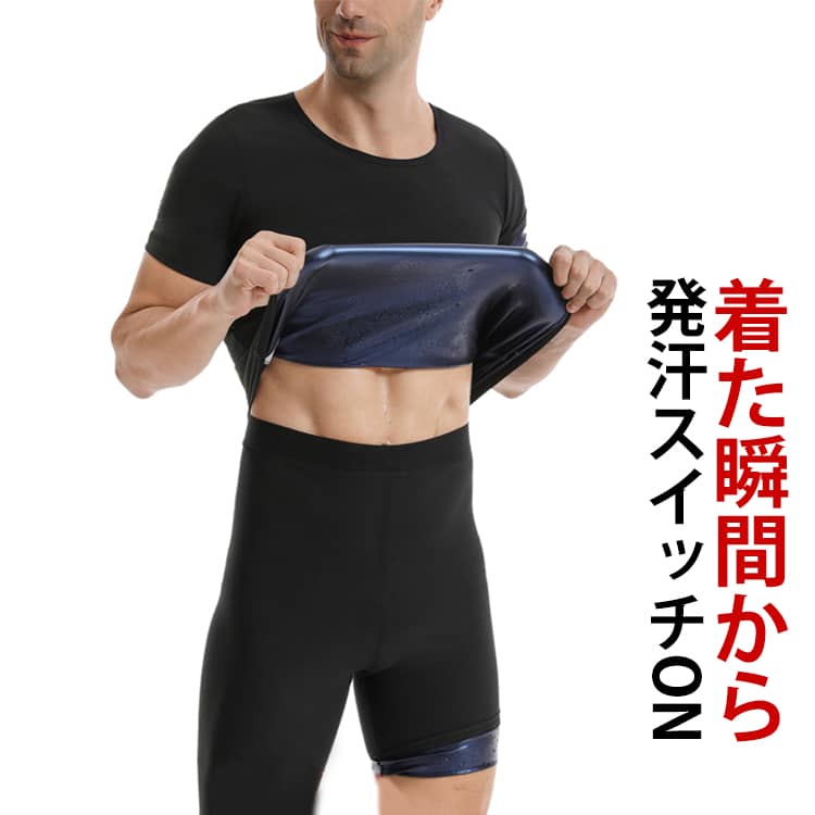 Tシャツ サウナ 半袖 サウナシャツ メンズ 発汗 ヒートシャツ スパッツ お腹 シェイパー 着るサウナ サウナスパッツ サウナパンツ 腹巻 インナー 着圧 ヨ ウエスト