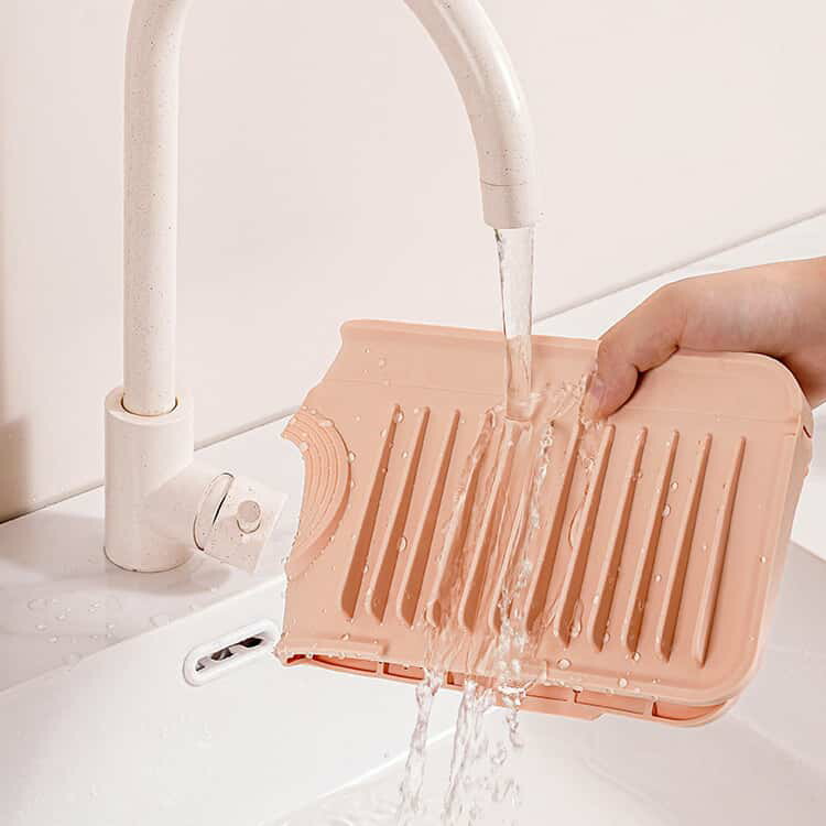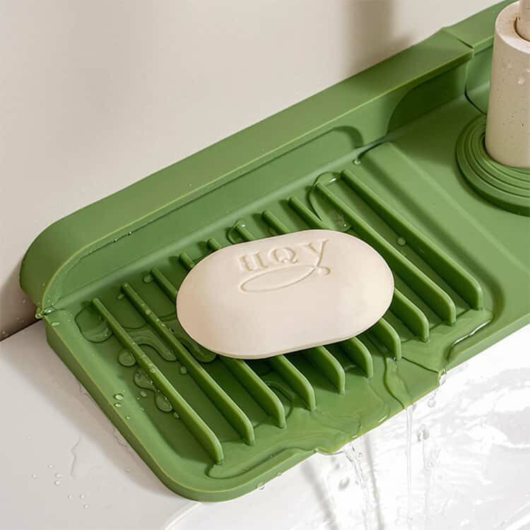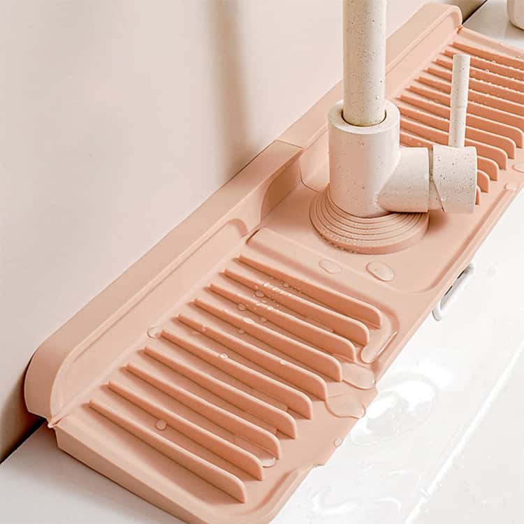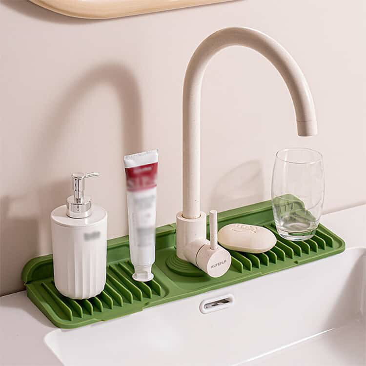 洗面台やシンクの蛇口下に敷くだけで、水はね・水浸しを防ぐシリコン製マット。
