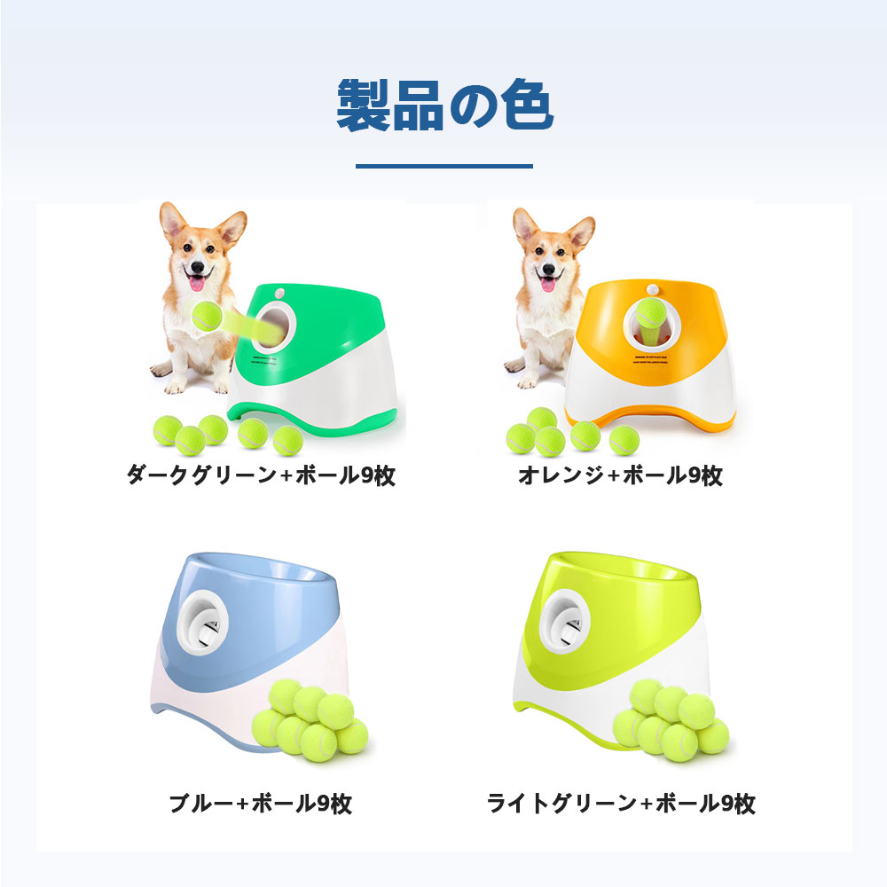 ペットボール投げ機 犬 自動 ボール 犬用品 おもちゃ ボール 豊富な品揃え ダークグリーン+ボール9枚 ブルー+ボール9枚 オレンジ+ボール9枚 ライトグリーン+ボール9枚
