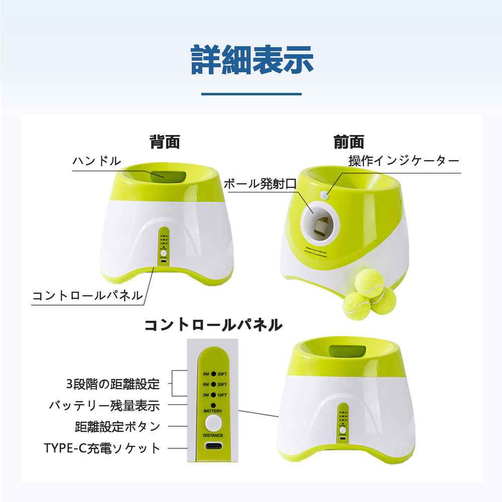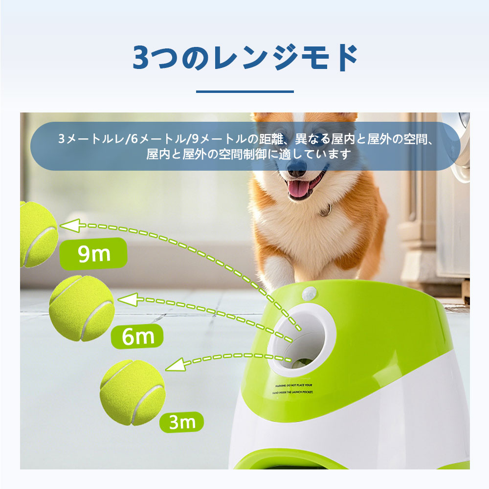 ペットボール投げ機 犬 自動 ボール 投げ機 ボールランチャーペット用 屋内用 3モード 遠距離グリーンドッグ 自動ボールランチャー ボール9個付き ランチャー おもちゃ 動く 投げ