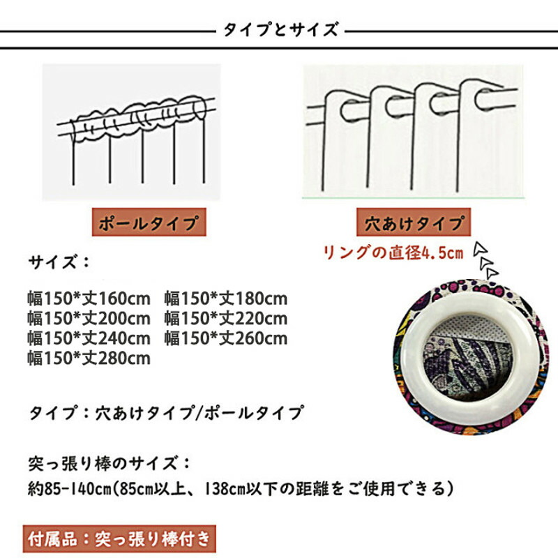 カーテン 間仕切り 突っ張り棒付き 丸 幅150*丈160cm 幅150*丈180cm 幅150*丈200cm 幅150*丈220cm 幅150*丈240cm 幅150*丈260cm 幅150*丈280cm ポールタイプ 穴あけタイプ
