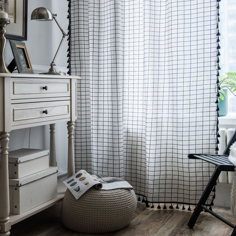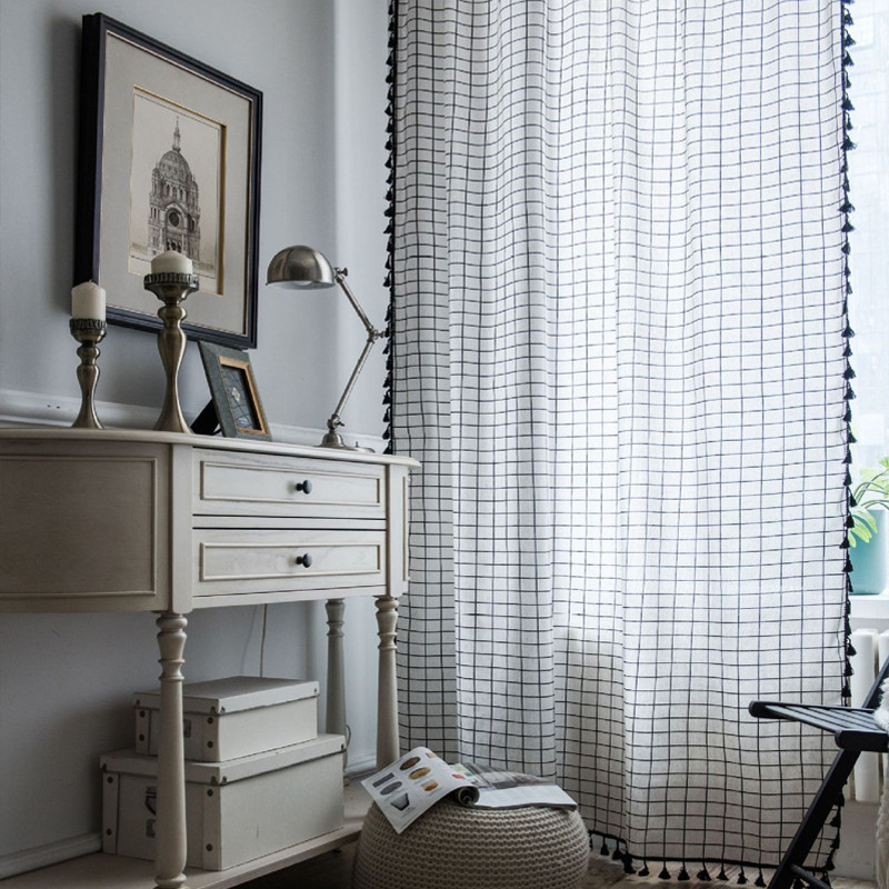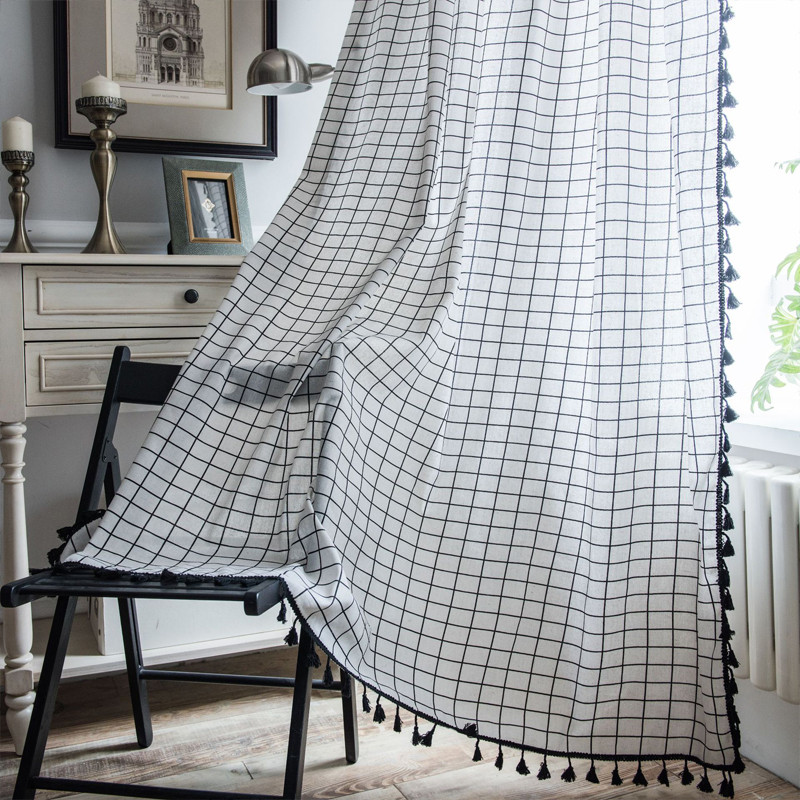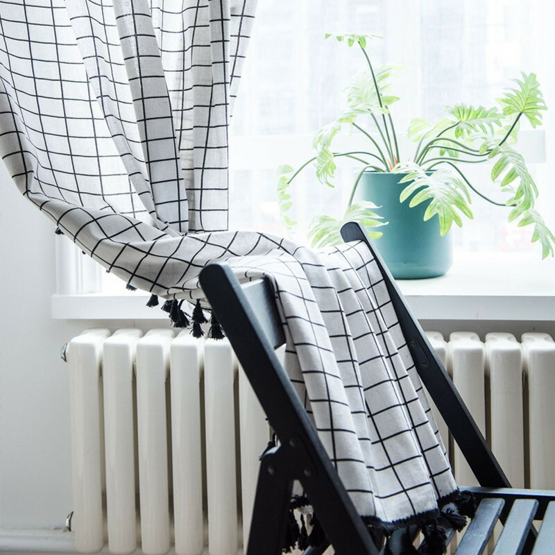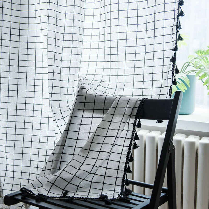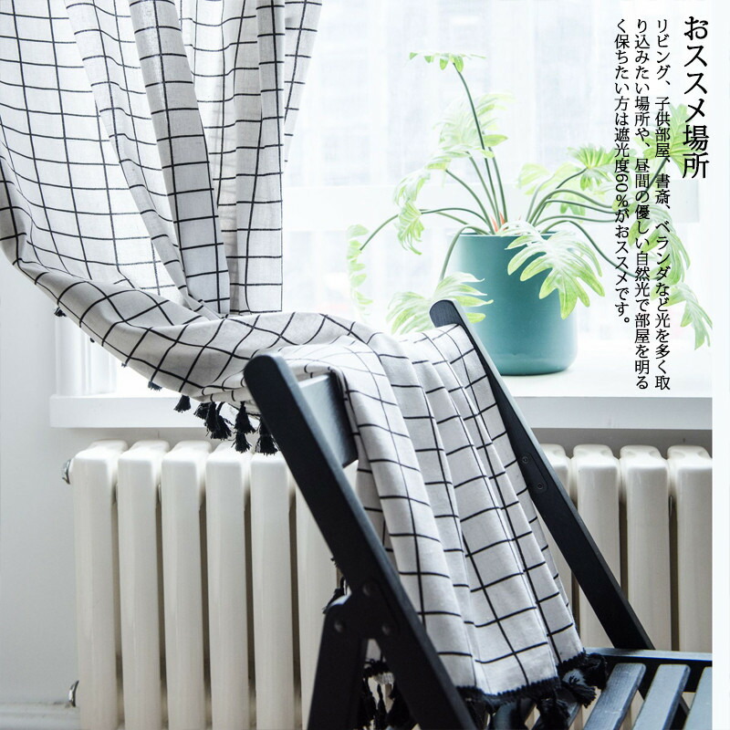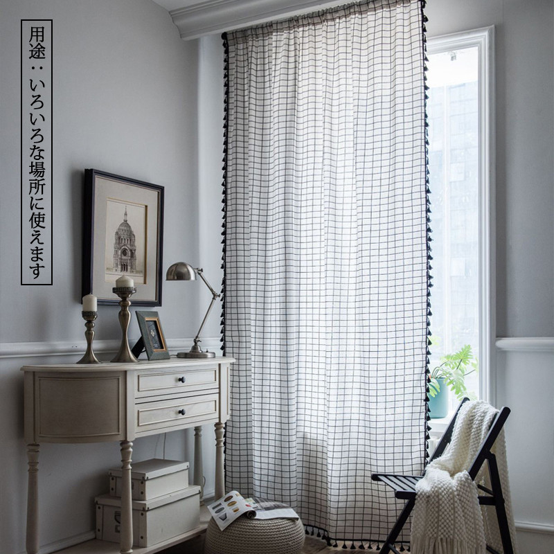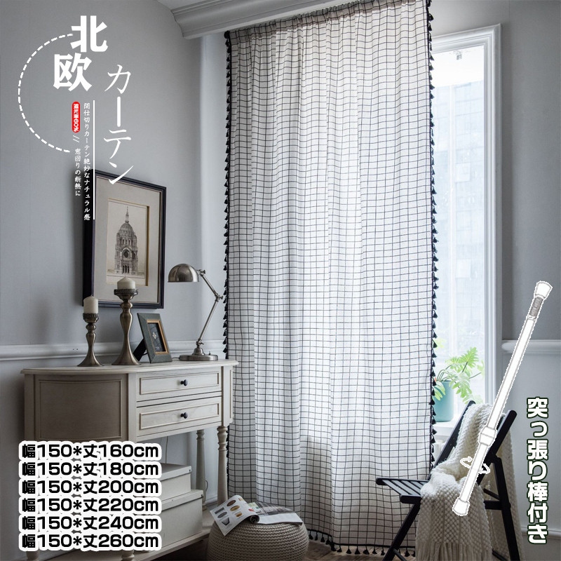 半分遮光 間仕切りカーテン 突っ張り棒 カーテン 間仕切り チェック柄 ロング のれん 窓 ドア 仕切り キッチン 巾幅150cm ins風 簡約 洗える