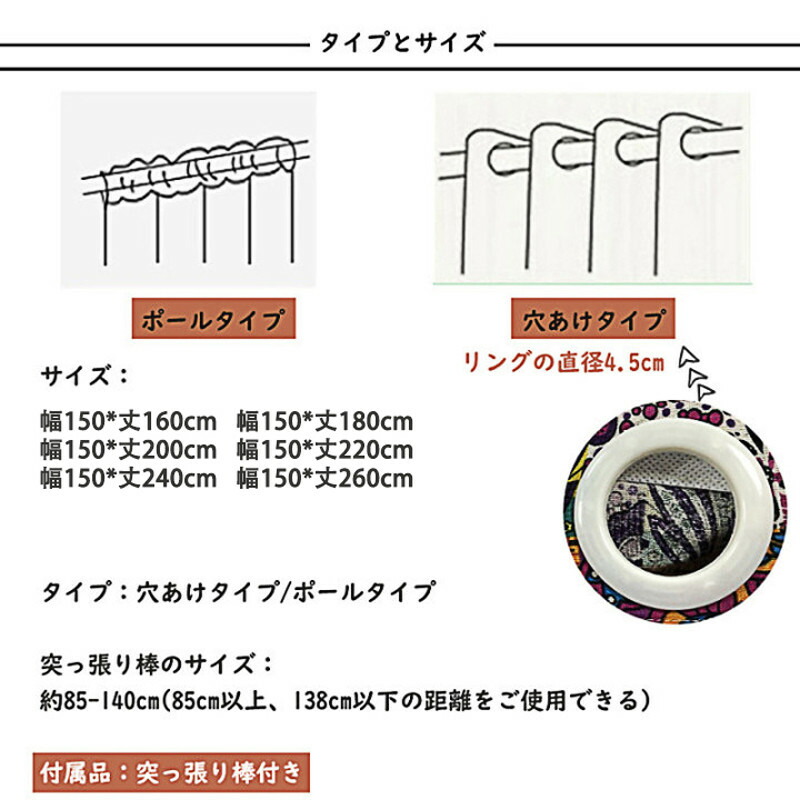 半分遮光 間仕切りカーテン 突っ張り棒 幅150*丈160cm 幅150*丈180cm 幅150*丈200cm 幅150*丈220cm 幅150*丈240cm 幅150*丈260cm ポールタイプ 穴あけタイプ