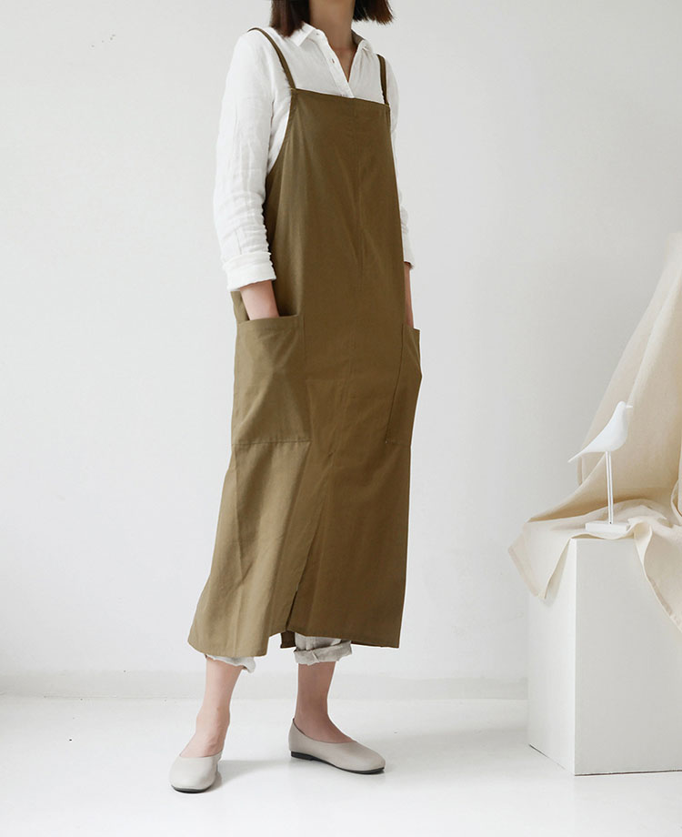 ※おしゃれで使いやすい:身体を包みこむ大判シルエットでお尻や足回りをスッキリと隠してくれます。軽くてロング丈のエプロンなので長時間着けていても疲れない、大切な衣類を汚れから守ります!