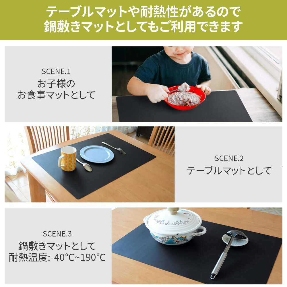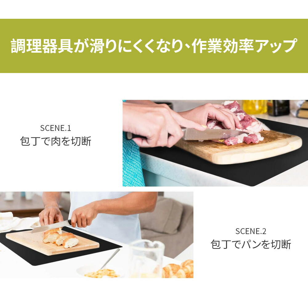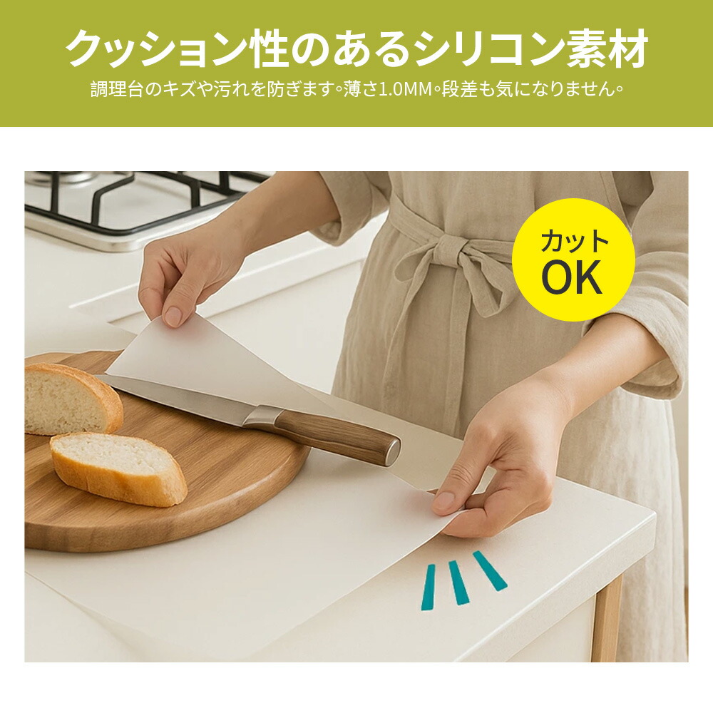 【作業効率アップ!快適なキッチン環境を実現】 広々と使える大判シリコンマット。調理台やカウンターの滑り止めとして活躍し、作業中の安定感がアップ。キッチンだけでなく、DIY作業台やデスク保護マットとしても便利に使えます。