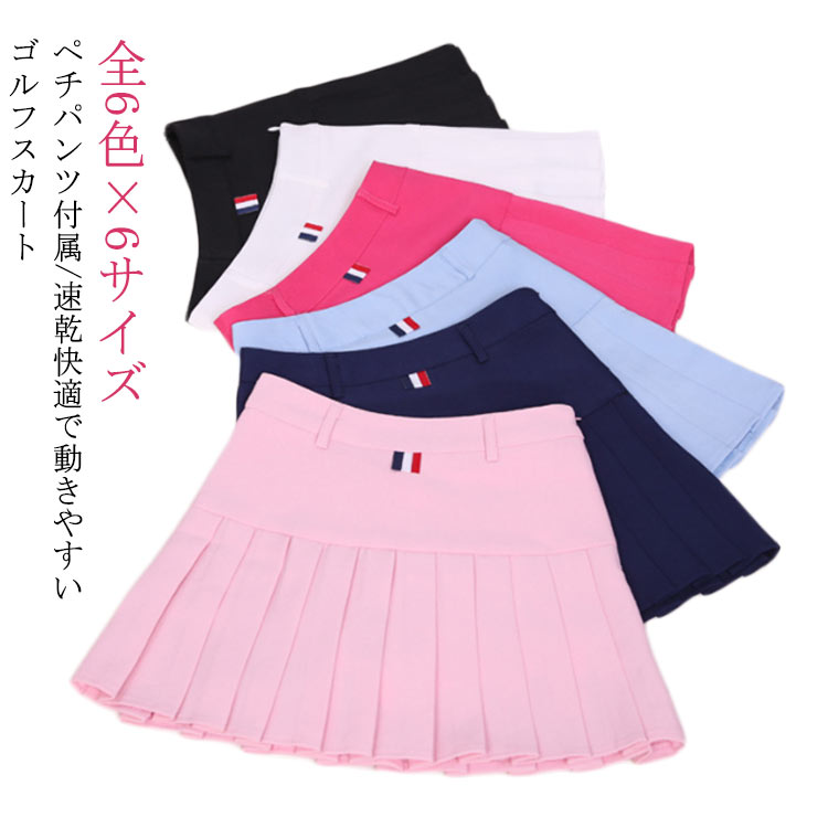 スカート レディース ゴルフスカート インナーパンツ付スカート ペチパンツ付属 ショート丈 ネイビー 春夏 丈短め ゴルフ かわいい ブラック ピンク スカイブル ホワイト