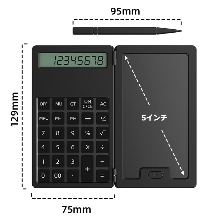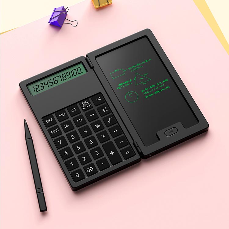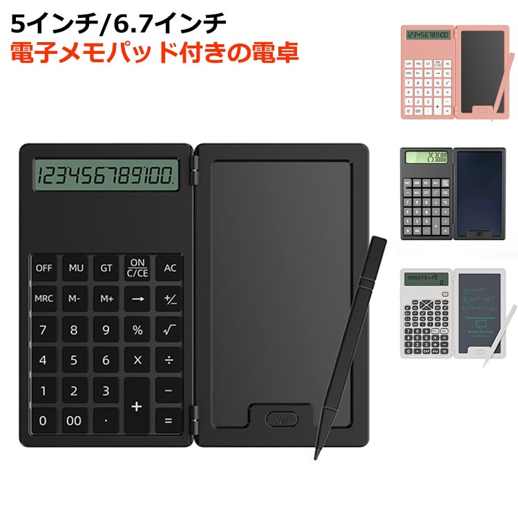 電子メモパッド付きポータブル電卓 コン ブラック ホワイト グレー ピンク 5インチ 6.7インチ
