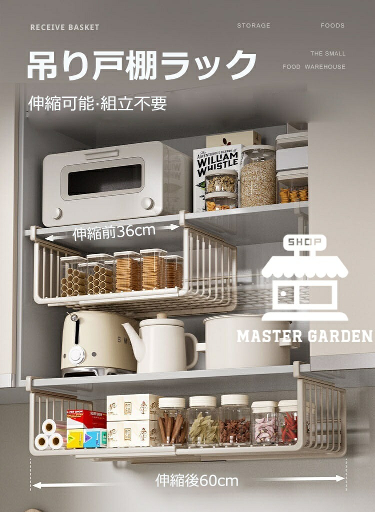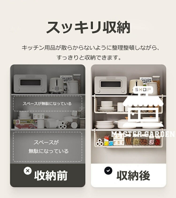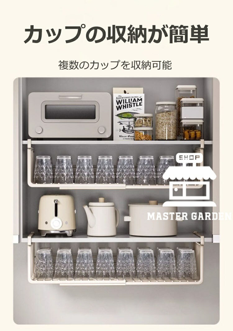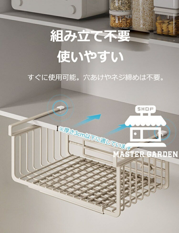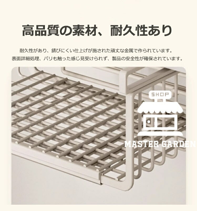 吊り下げ収納ラック 吊り下げ収納 戸棚下収納ラック 伸縮可能 工事不要 滑り止め設計 デスク下 キッチンラック 吊り戸棚下ラック 小物収納 棚下収納 多機能ラック 収納 スペース有効活用 隙間 掛け式