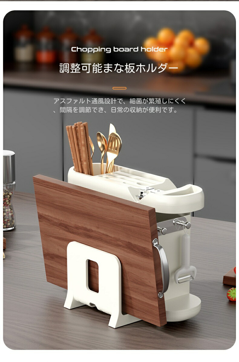 【シンプルで見た目がお洒落】包丁ホルダー全体は質感のあるホワイト、無機質な印象を与えず、どんなキッチンにも馴染みやすいのも嬉しいポイントです。シンプルで温かなキッチンの雰囲気を壊したくない方にぴったりです。