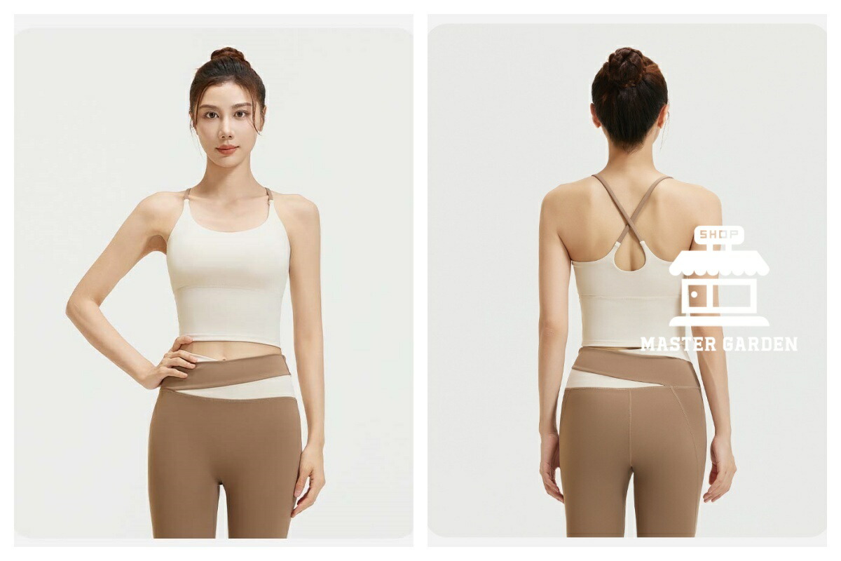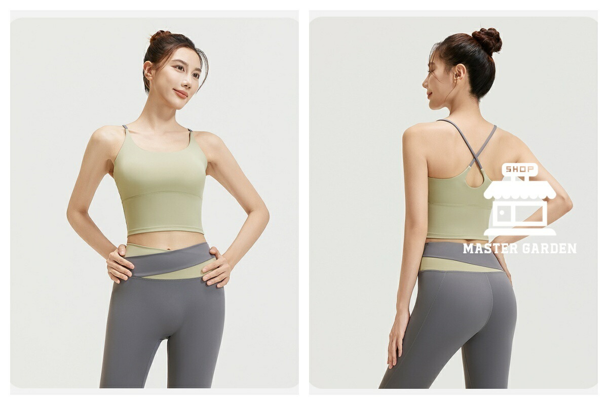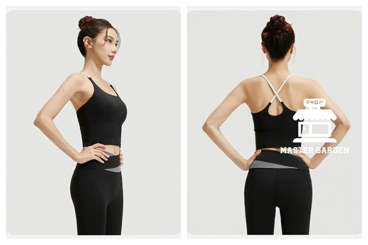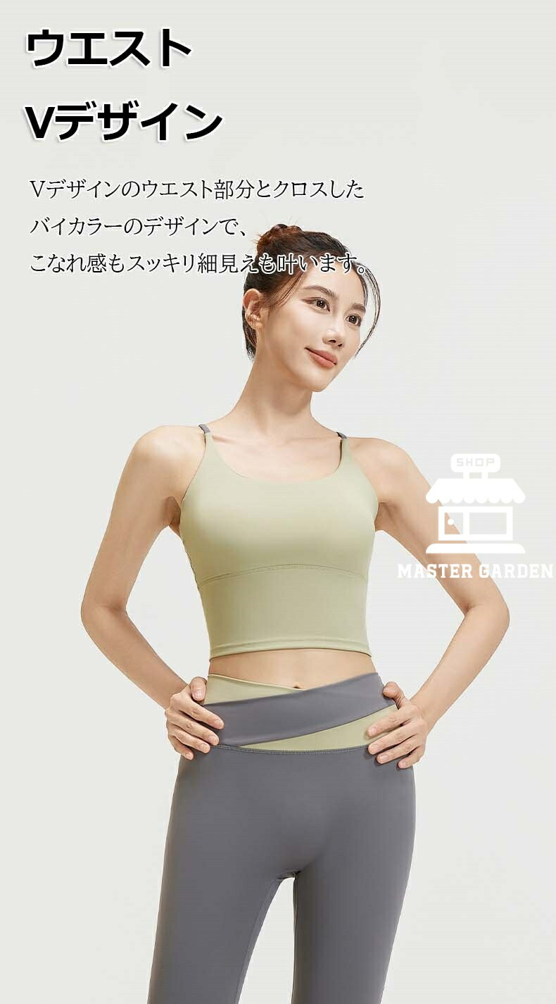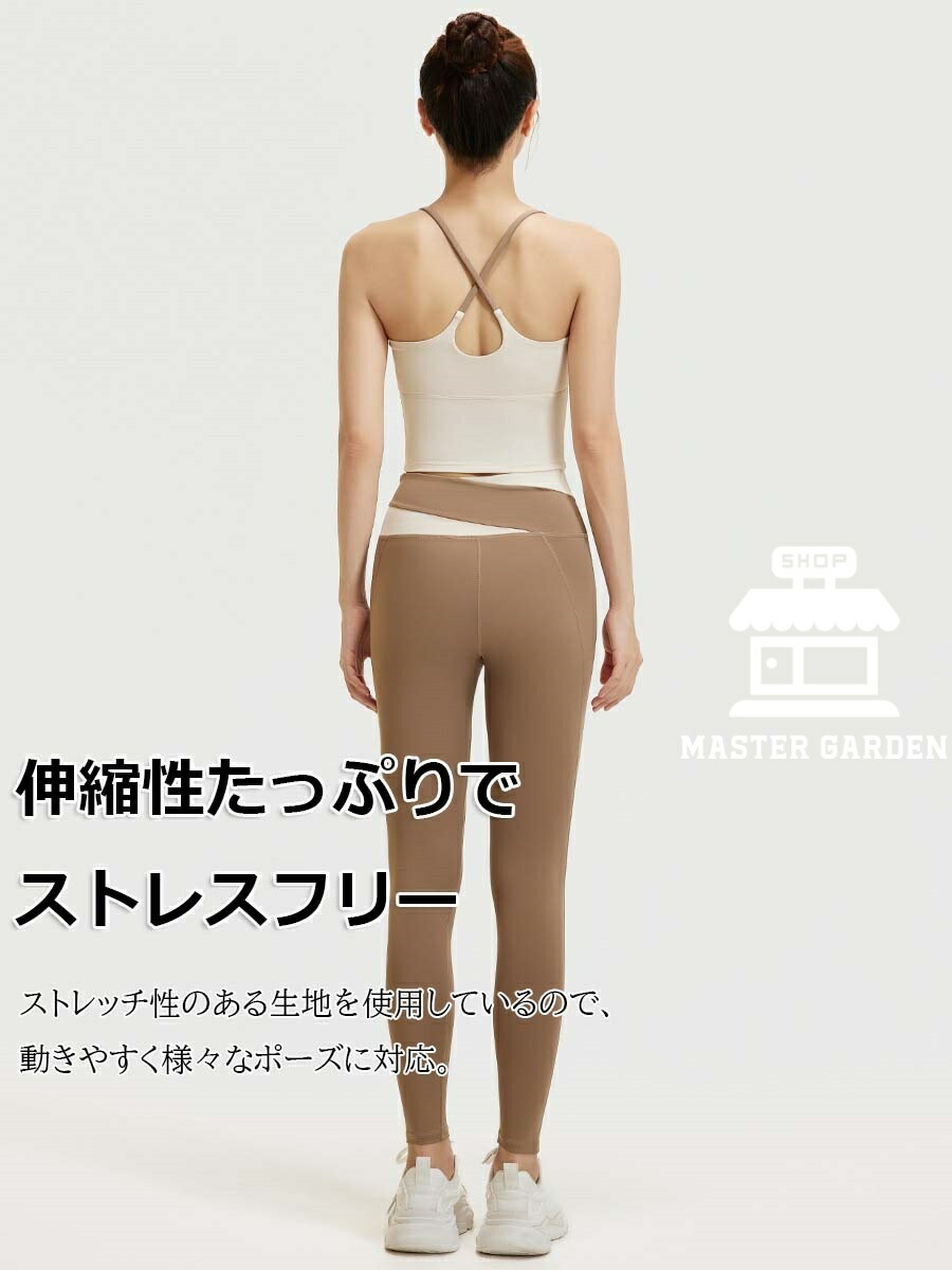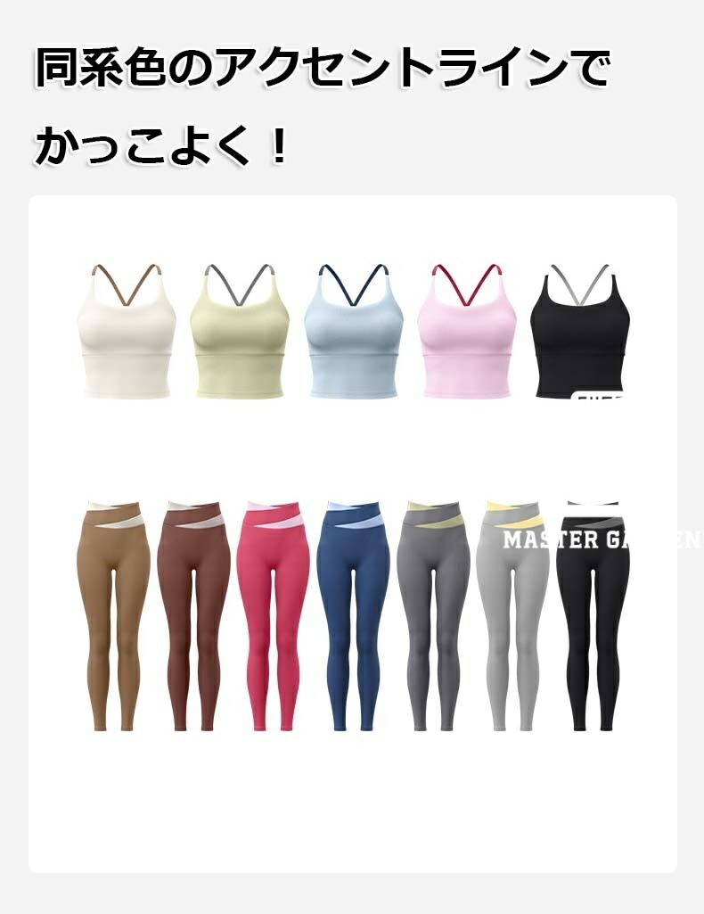 ヨガウェア 上下セット レディース ブラトップ レギンス 2点セットアップ 無地 ヨガパンツ バイカラー 薄手 速乾性 ヨガトップス パッド一体型 クロップド丈 ハイウエスト 運動 ホッ バッククロス