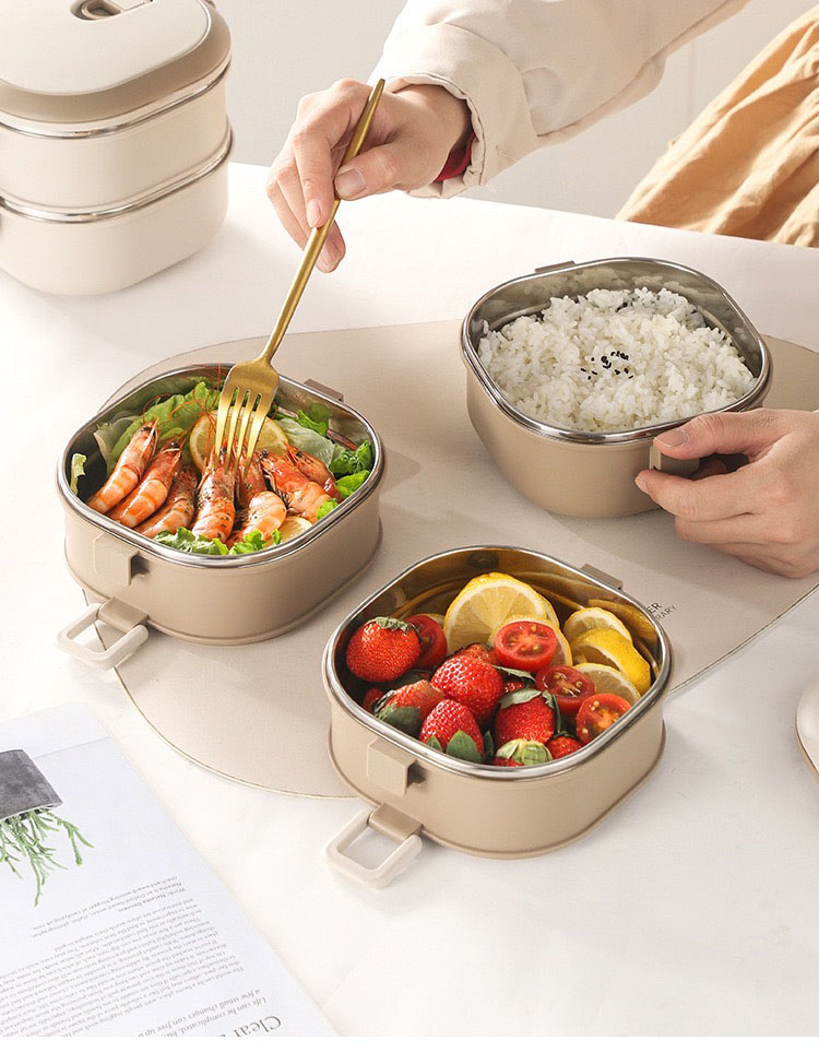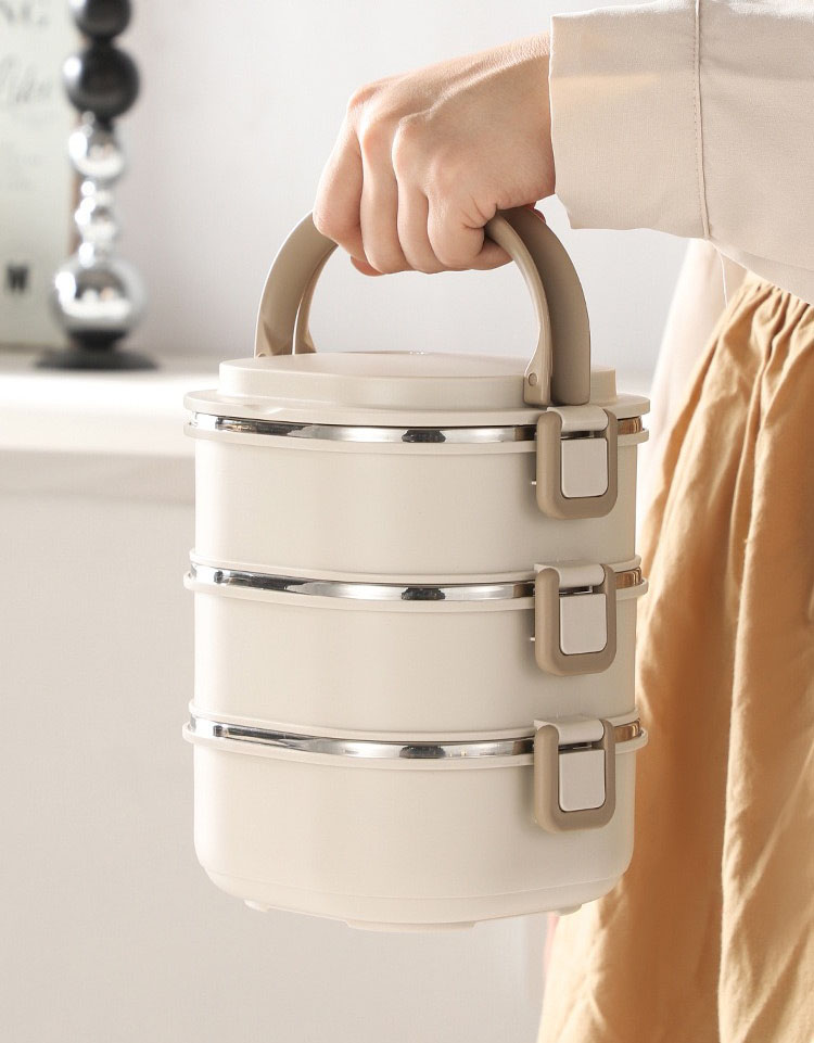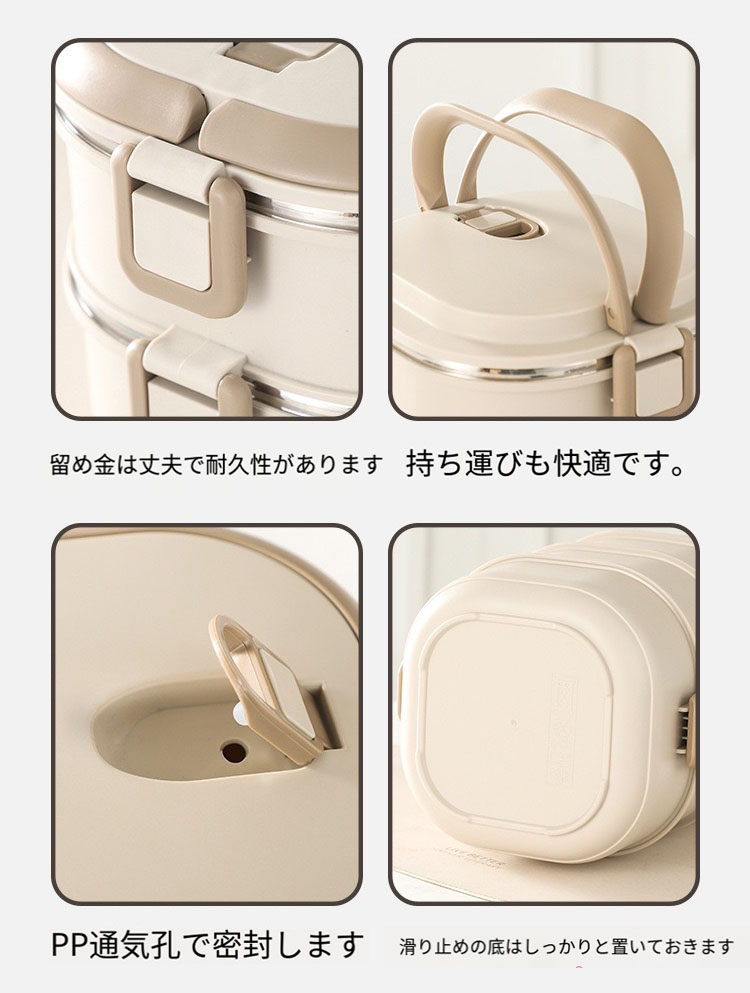 断熱弁当箱セット 保温弁当箱 保温ラン キッチン用品 食器 調理器具 特集 カーキー オフホワイト 1段-700ml 2段-1400ml 3段2100ml