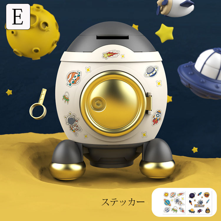 貯金箱 おしゃれ マネーバンク 子供 硬貨 コイン お札 紙幣 鍵付き シール付き ロケットの形 可愛い 飾り付き 金庫 おもちゃ 大容量 小銭投入ボックス お年玉 コインバンク 子ども お金