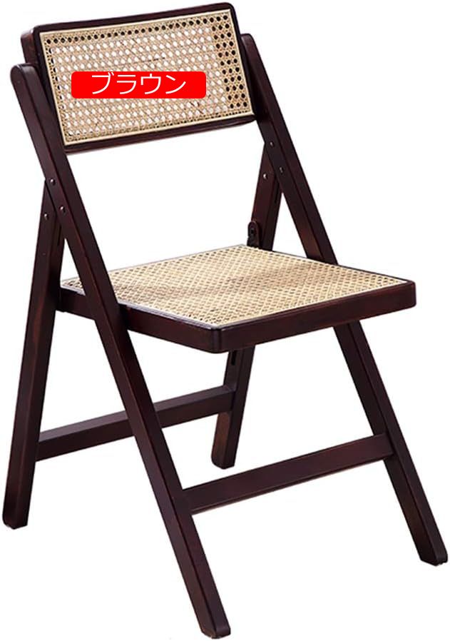北欧レトロ籐ダイニングチェア無垢材シングル折りたたみチェアブラウンブラックチークカラーさわやかで通気性