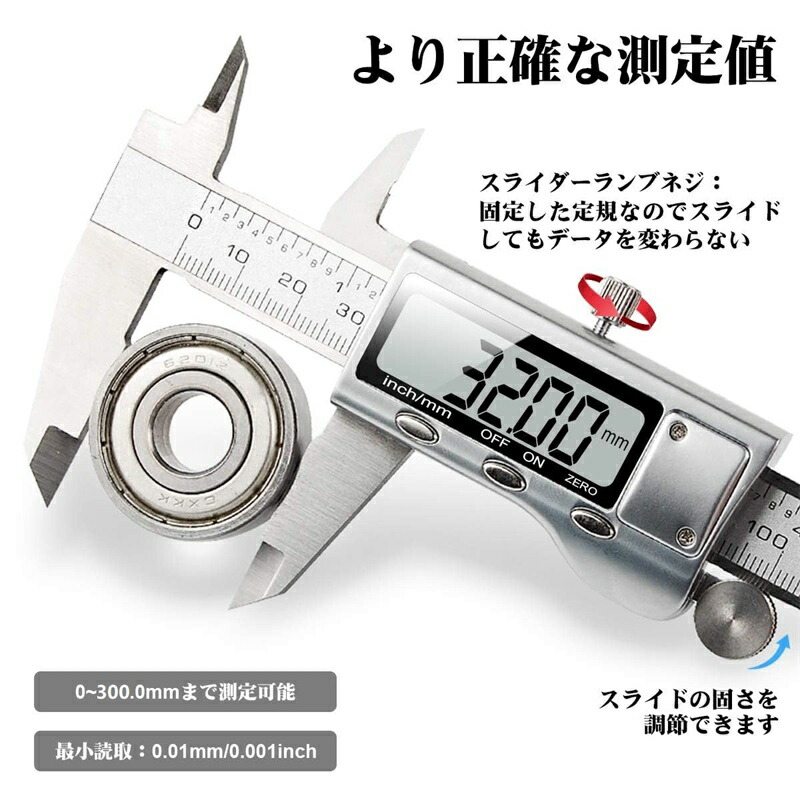 【高精度で多用途|家庭から専門作業まで対応】 精度0.03±0.02mm、分解能0.01mmの高精度設計で、家具のDIYや模型制作、写真フレームの設置、日曜大工などの家庭用はもちろん、趣味や半業務レベルの測定にも安心してご使用いただけます。日常的な誤差を抑えながら、スムーズかつ安定した測定が可能。初めてのノギス購入にも最適で、測定に不安のある方にも自信を持っておすすめできる一台です。