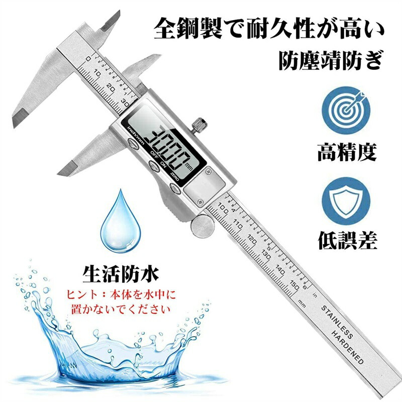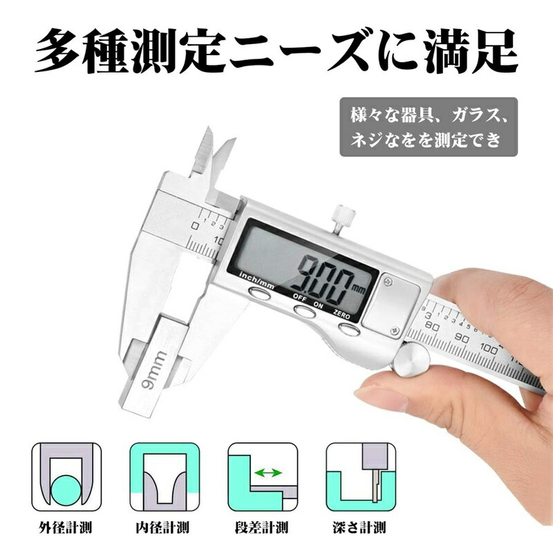 デジタルノギス 100mm 150mm 200mm 300mm高精度 全金属製 大型LCD 内径 外径 段差 DIY 工業用に最適 収納ケース 深さ測定対応