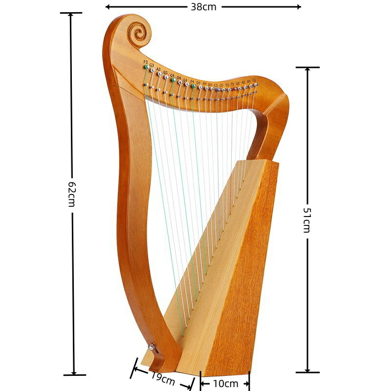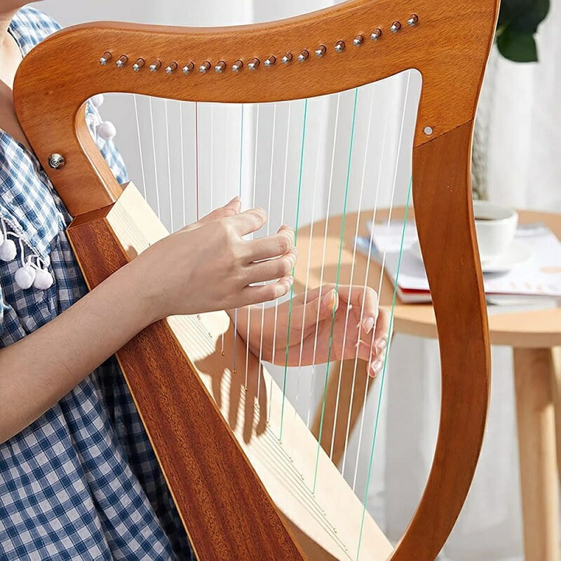 ポータブルアイリッシュハープ ミニ木製ハープ マホガニー弦楽器、ハープバッグ チューニングレバー付き、音楽愛好家へのギフト,19string