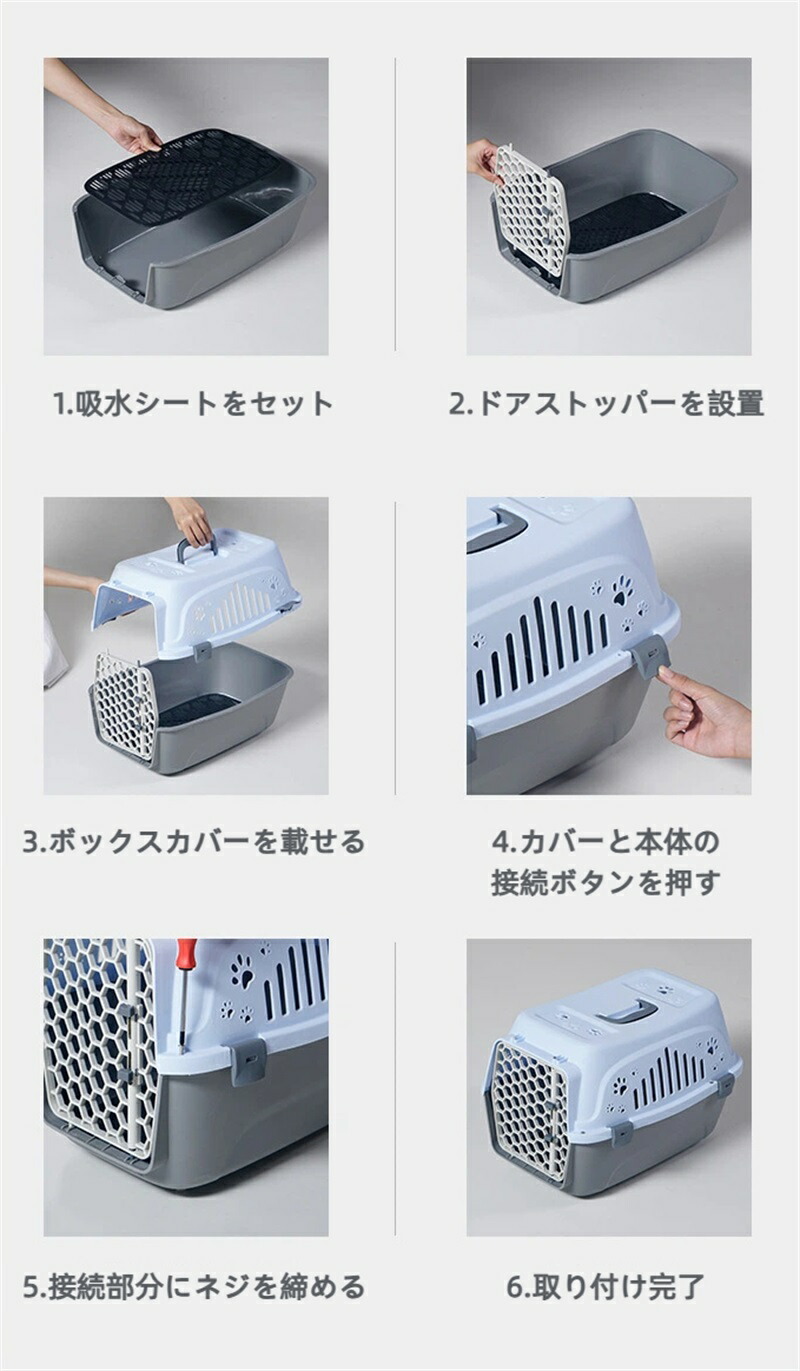 いつでも清潔プラスチック製で水洗い可能。いつでもキレイで清潔を保てる。通気性が良い、においは残りません。pp製のハードキャリーなので、丸洗いできます。お出かけ時だからこそ急な粗相や嘔吐でもサッと拭くだけで対応できるのが嬉しいです。
