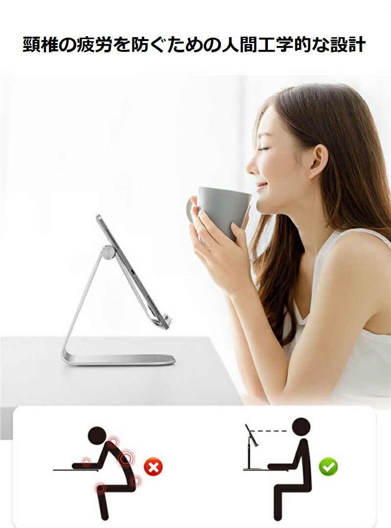 タブレット ホルダー スタンド アルミ 角度調整可能 回転可能 スタンド式 デスク台 会議 タブレット対応 置き台