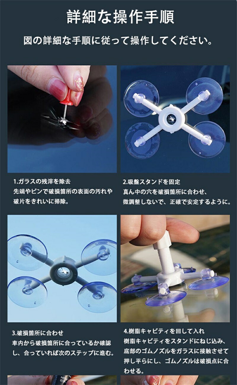 付属の分かりやすい手順書に従えば、専門知識がなくても簡単に修復作業ができます。自分の手でウインドシールドを新品状態に戻すことが、これほど簡単だと知って驚くはずです。